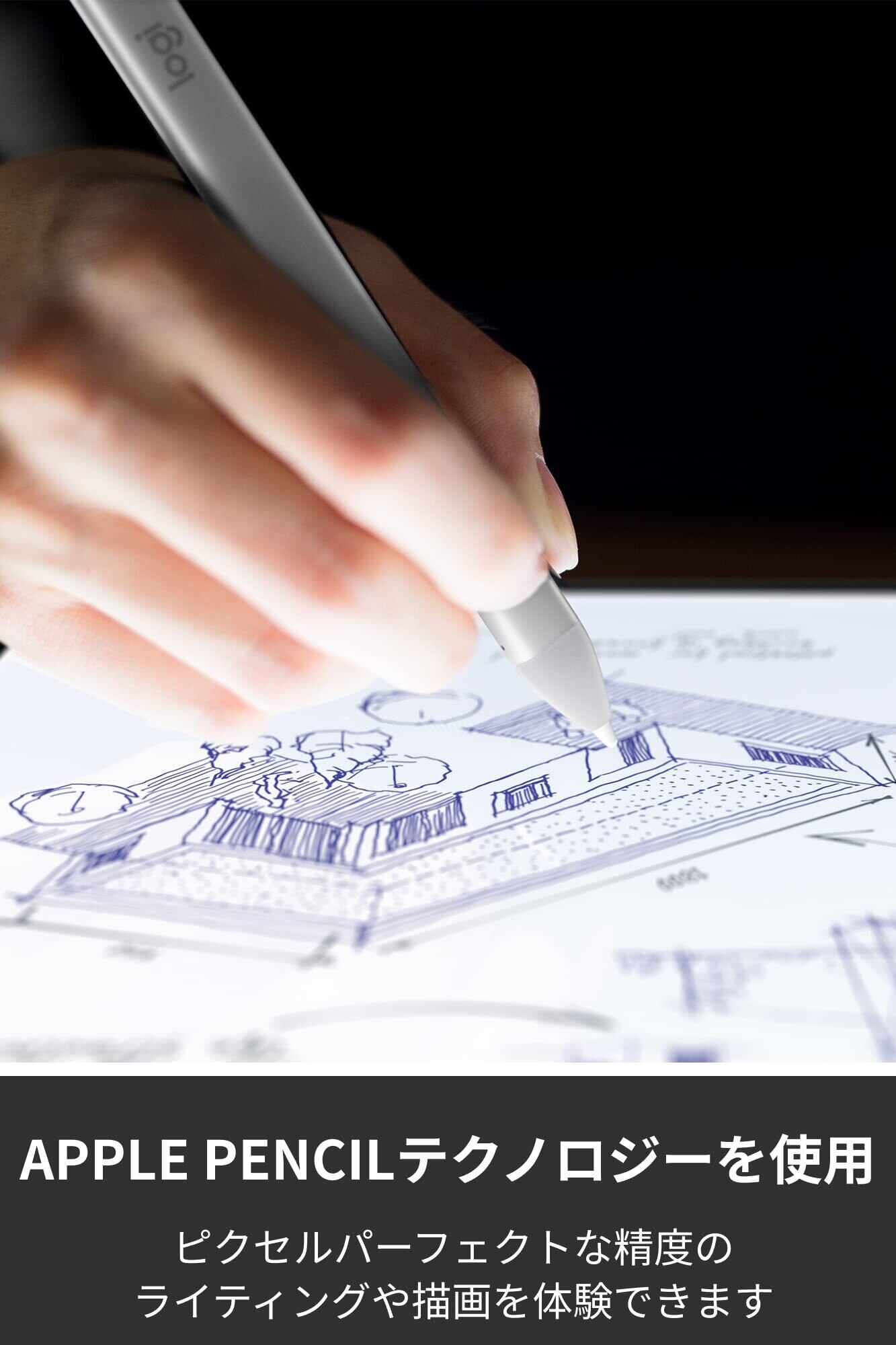 ロジクールCrayonはApple Pencilテクノロジーを使用しているため、紙と鉛筆のように自然な感触の、反応性の高い、非常に精確なライティング体験を提供します。傾けるだけで線の太さを調節可能 — 高性能チップが線の太さを自動的に調節します。