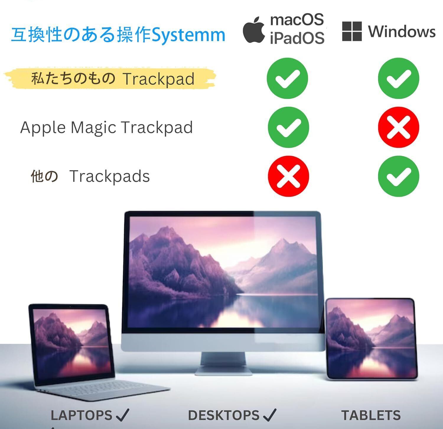 ユニバーサルな互換性: LuolaProject ワイヤレス トラックパッドを使用して、Mac と Windows の両方のシステムとのシームレスな統合をお楽しみください。 Magic Trackpad 3 の高性能代替品として設計されたこのデバイスは、すべての Apple および PC デバイスとの互換性をします。
