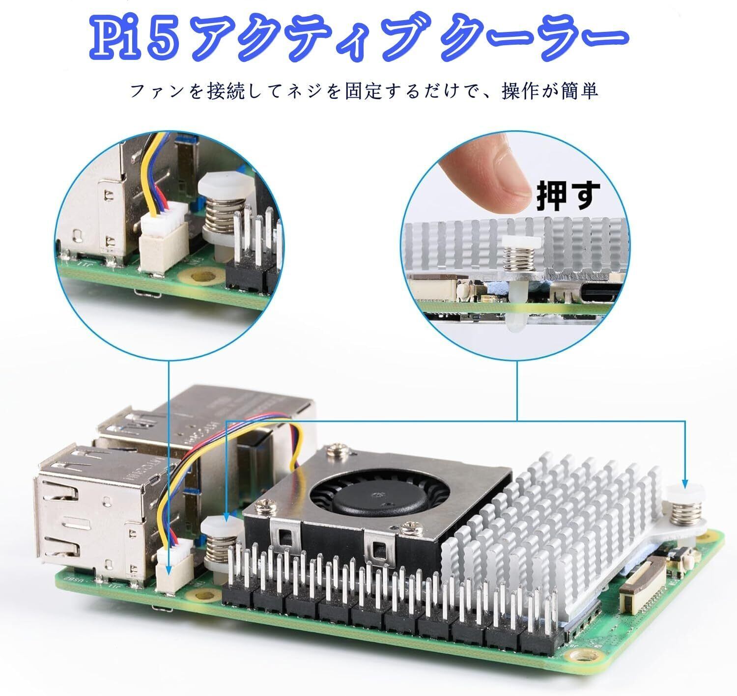 【アクティブ冷却器】放熱効率の高いアクティブヒートシンクと温度制御アクティブ冷却ファンを組み合わせることで、ラズベリーパイ5は高消費電力で適切な動作温度を維持しながら、高温のダウンを回避し、特にオーバークロックプレイヤーに最適です。 注意:アクティブ冷却器を取り付けた後は、特に特別な理由がない限り、取り外さないでください。
