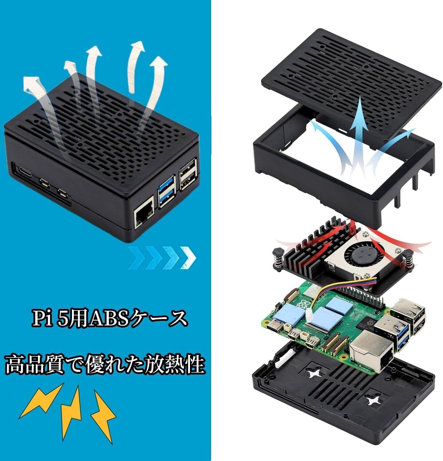 【ABS黒色ケース】Pi 5用に特別に設計されたケースは高品質のABS素材製で、放熱性能が優れており、メモリーカードの挿入と取り外し、GPIO ケーブルを接続でき、Pi5 電源インジケーターの動作状態を簡単に確認できます。外部からの衝撃や損傷からRaspberry Piを強力に保護します。
