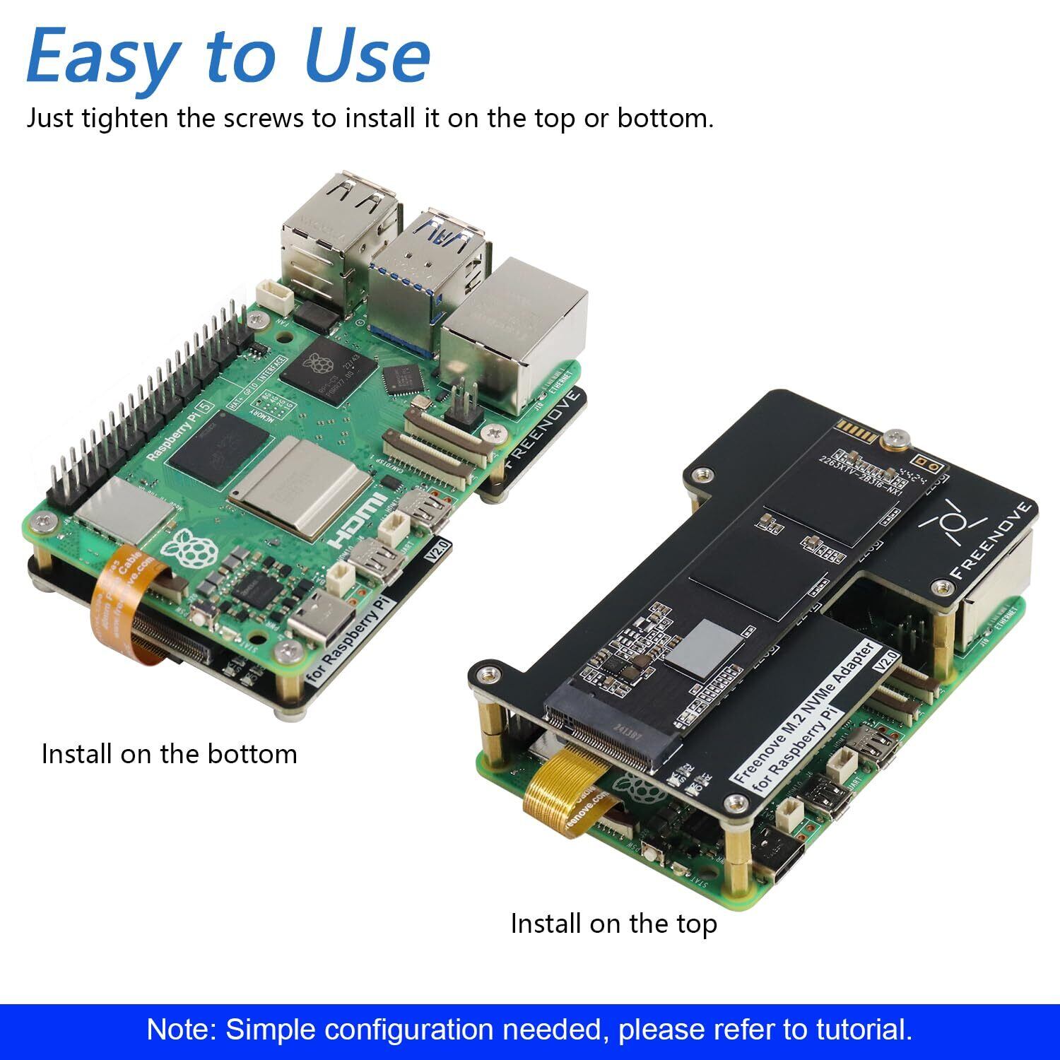 Freenove M.2 NVMe Adapter V2 for Raspberry Pi 5 (SSDなし), M.2 HAT エクストンボード, SSD サイズ 2230 2242 2260 2280, PCIe 2.0 / 3.0, 最大速度 1231 MB/s