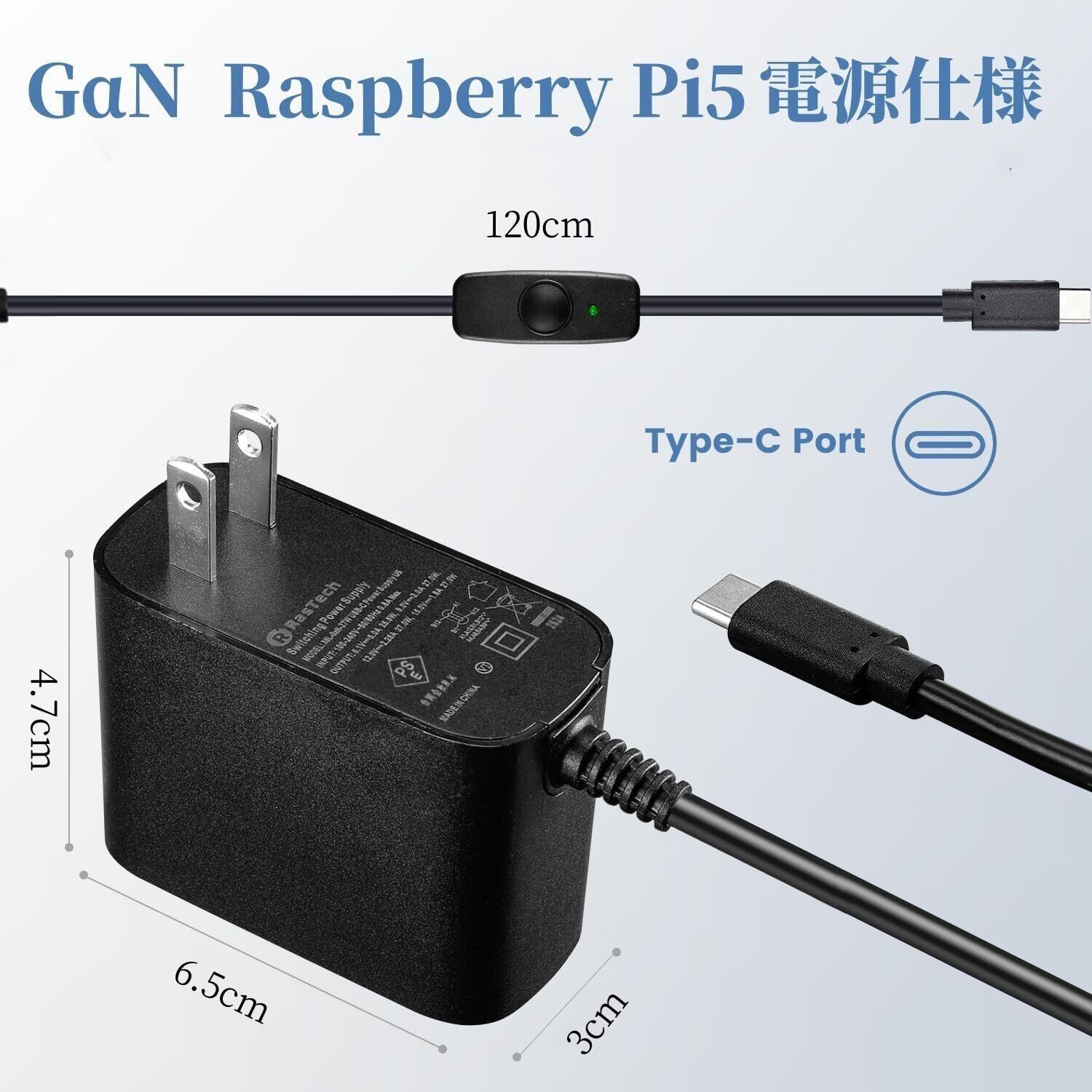For Raspberry Pi 5/Pi 4 電源 スイッチ付き GaN技術搭載 PD 27W 5.1 V 5A USB Type C Raspberry pi5 用アダプター ラズベリーパイ5 電源 小型軽量 PSE認証取得 Raspberry Pi 5 /Pi 4 Model B/Pi 500に対応でき