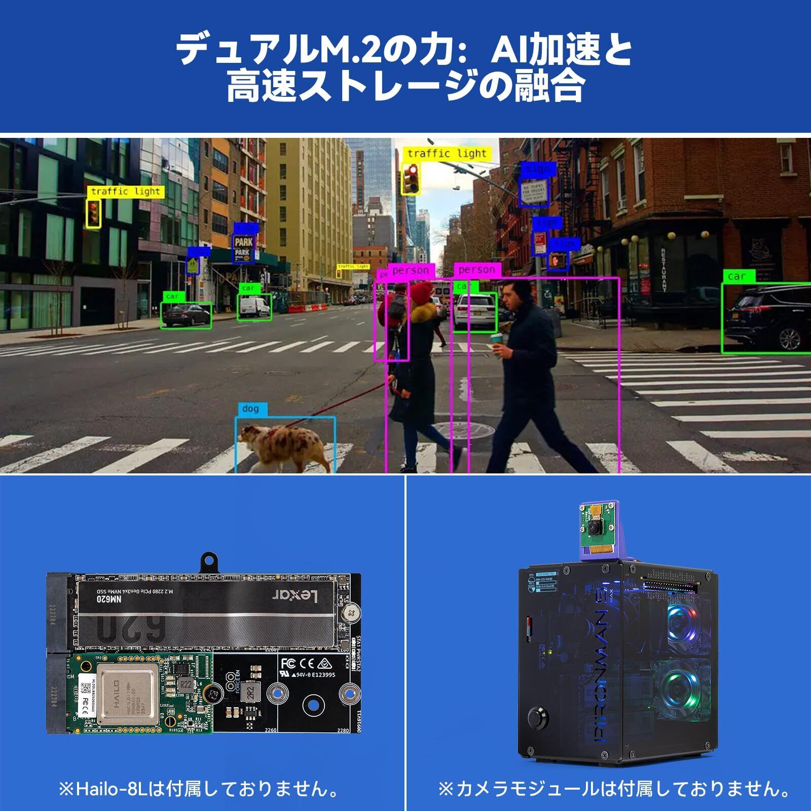 Raspberry Pi 5専用・MAXケース:Pironman 5-MAXは、Raspberry Pi 5の性能を最大限に引き出すために設計された、当社史上最も高度なPCケースです。RAID 0/1対応のデュアルNVMe M.2スロット、Hailo-8l M.2 AIなどのAIアクセラレーター互換性、PCIe Gen2スイッチ、PWMタワークーラー + デュアルRGBファン、RGBライティング付きのデュアル透明パネル、振動で起動するスマートOLEDディスプレイなどを搭載しています。すべてのポートはケーブルマネジメントを最適化して配置されており、デュアルフルサイズHDMIおよびUSB-C給電ポートを含み、4K映像出力にも対応しています。高性能NASやAIエッジコンピューティングデバイス、Home Assistantハブ、ゲーム環境などの構築に最適です。 (※Raspberry Pi本体は付属しておりません)