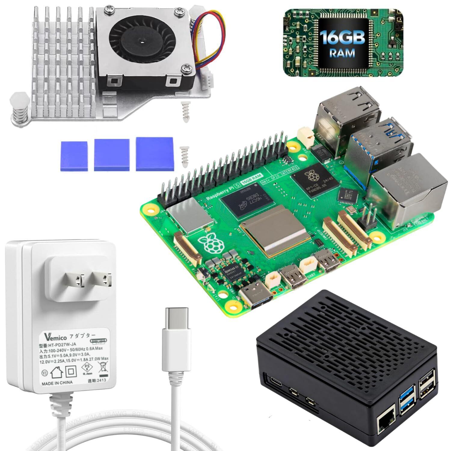 Vesiri Raspberry Pi5 16GB Kit日本技適済みraspberry pi5 セット ラズベリーパイ5 16gbボード+アクティブクーラー+Pi5 PD電源+ABSケース ラズベリーパイ5キット(ラズベリーパイ5 16gb kit)超高速ラズパイ/新モデル