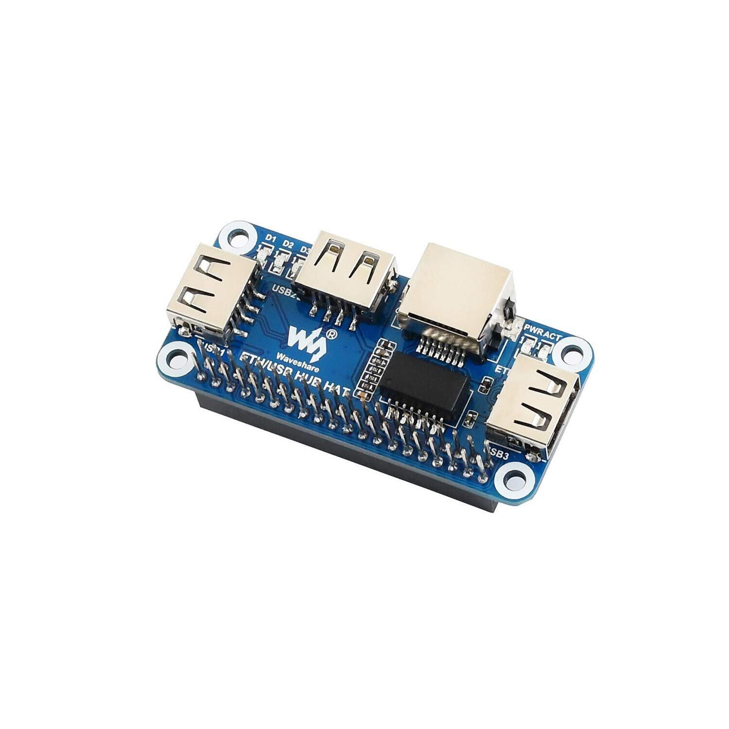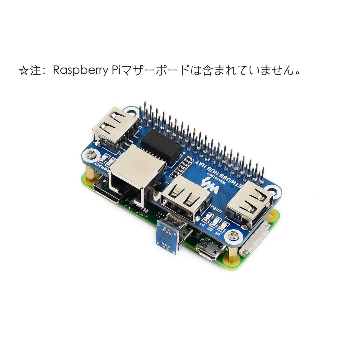 USB拡張ボードは、Raspberry Pi マザーボードに適した、1つのRJ45ネットワークポートと3つのUSBポートを含むイーサネットおよびUSBハブ機能を統合します。
