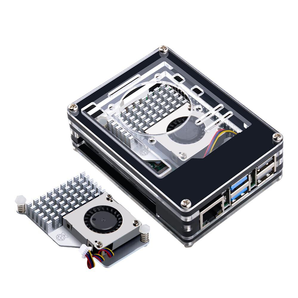 GeeekPi アクリルケース 公式 Pi 5 アクティブクーラー付き、Raspberry Pi 5 4GB/8GB 用 PWM ファンとヒートシンク付き Raspberry Pi 5 アクリルケース (公式 Pi 5 アクティブクーラー付属) (black and white acrylic case)
