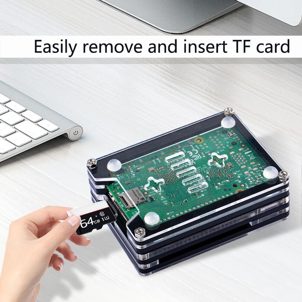 9層デザイン:各アクリル層はRaspberry Pi 5ボードを所定の位置にしっかりと保持し、動作ステータスが表示され、WiFiとBluetooth信号に影響を与えません。十字型の吊り下げ穴が2つあり、壁への取り付けもサポートします。