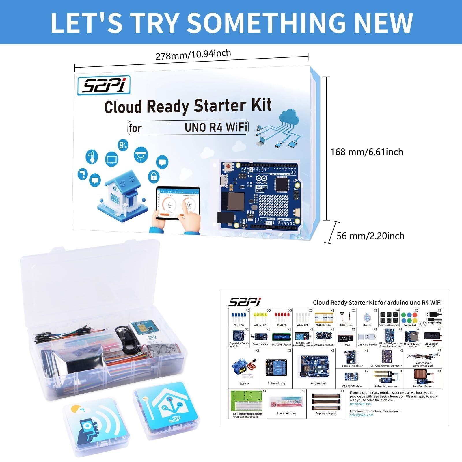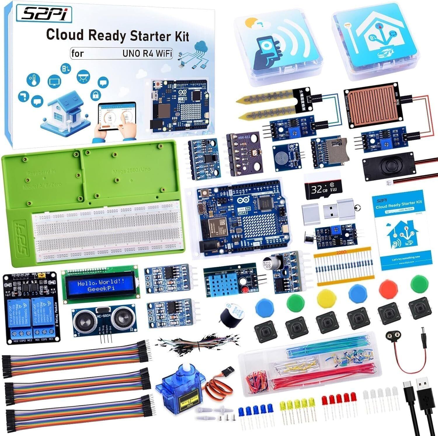 GeeekPi クラウド対応スターターキットは、Arduino UNO R4 WiFi、Bluetooth、I2C、12x8 LED マトリックス、IoT 統合、初心者およびエンジニア向けのチュートリアルと互換性があります。