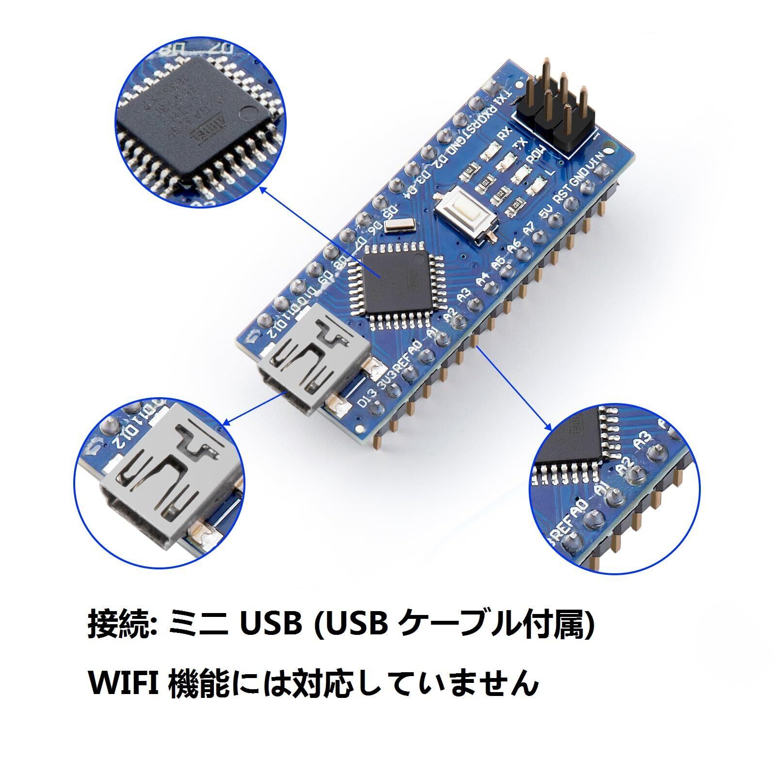 ELEGOO Arduino用 Nanoボード はんだ付け済み CH 340 Nano V3.0互換 USB ケーブル付き(3)