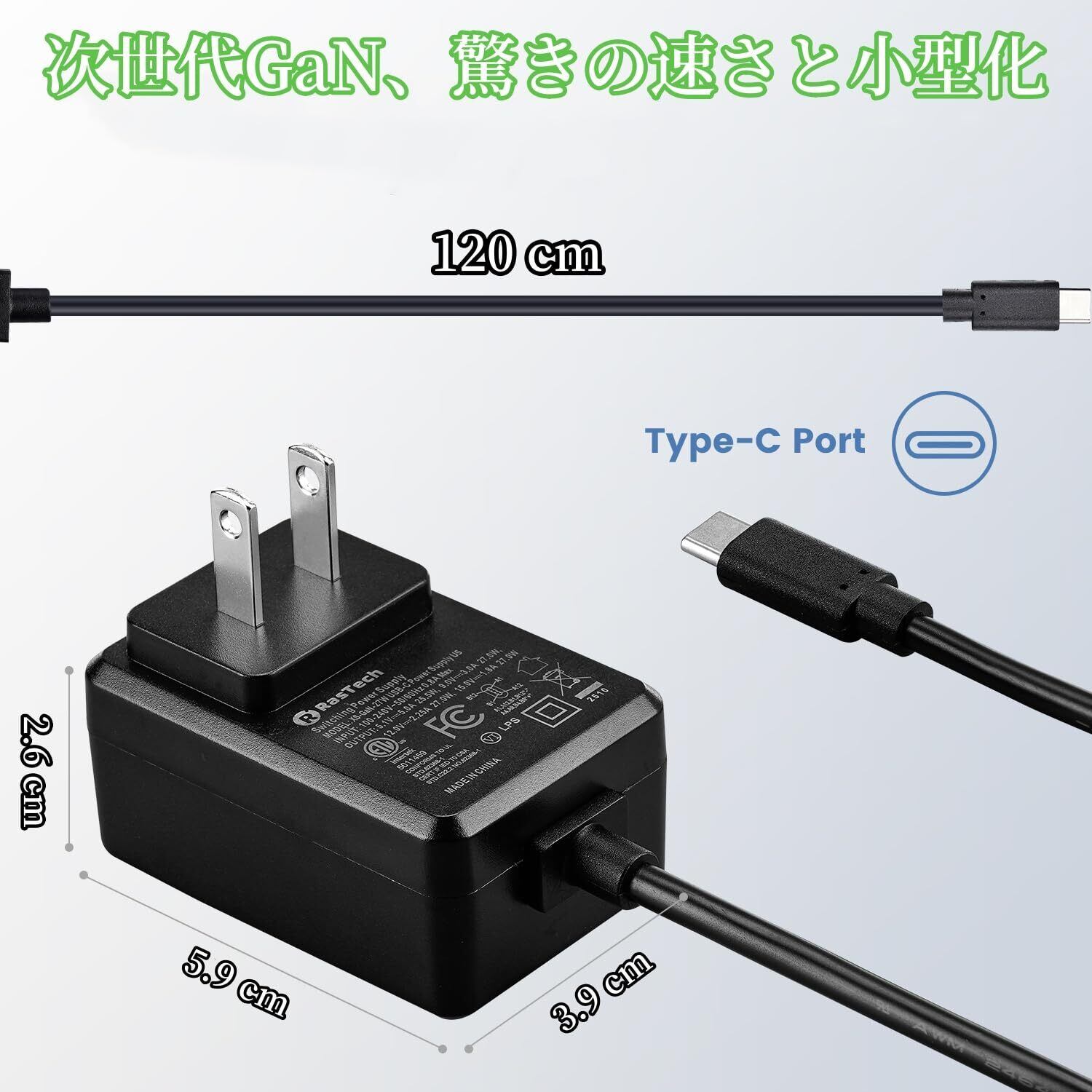 【新技術革命-GaN 搭載PD電源】27W新しくアップグレードされた GaN 電源: GaN テクノロジーにより、電力を犠牲にすることなく電源を小型化し、低温でも安定して動作します。入力:AC100—240V(PD対応) 50/60Hz;出力: 5.1V/5A、9V/3A、12V/2.25A、15V/1.8A (電力供給);ケーブル長:1.2M;タイプ:PD-27W Type-C;色:ブラック。従来よりも小型・軽量化,サイズ:60*40*25mm 重量: 約108g。Raspberry Pi 5 16GB/8GB/4GB/2GBに対応。