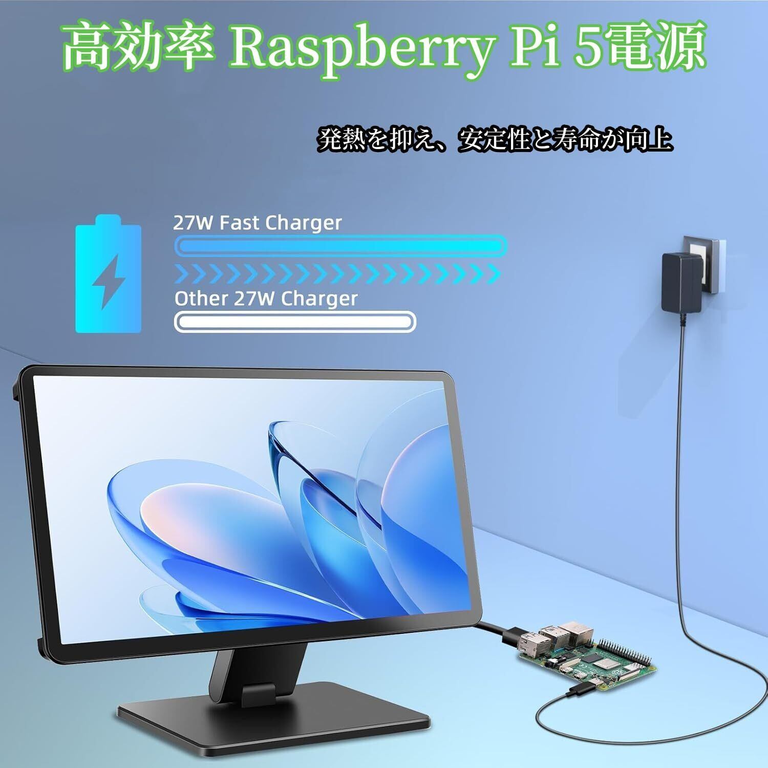 【PSE認証済&安全保護】raspberry Pi 5電源は耐久性と高温耐性のある素材を使用しているので、高い充電効率と優れた放熱性を備えています。PSE認証により、先進的な電気回路と内蔵の安全装置を備えており、短絡保護、過熱保護、過負荷保護、過電流保護、過電圧保護を提供して、お使いのraspberry Piを多方面から保護します。