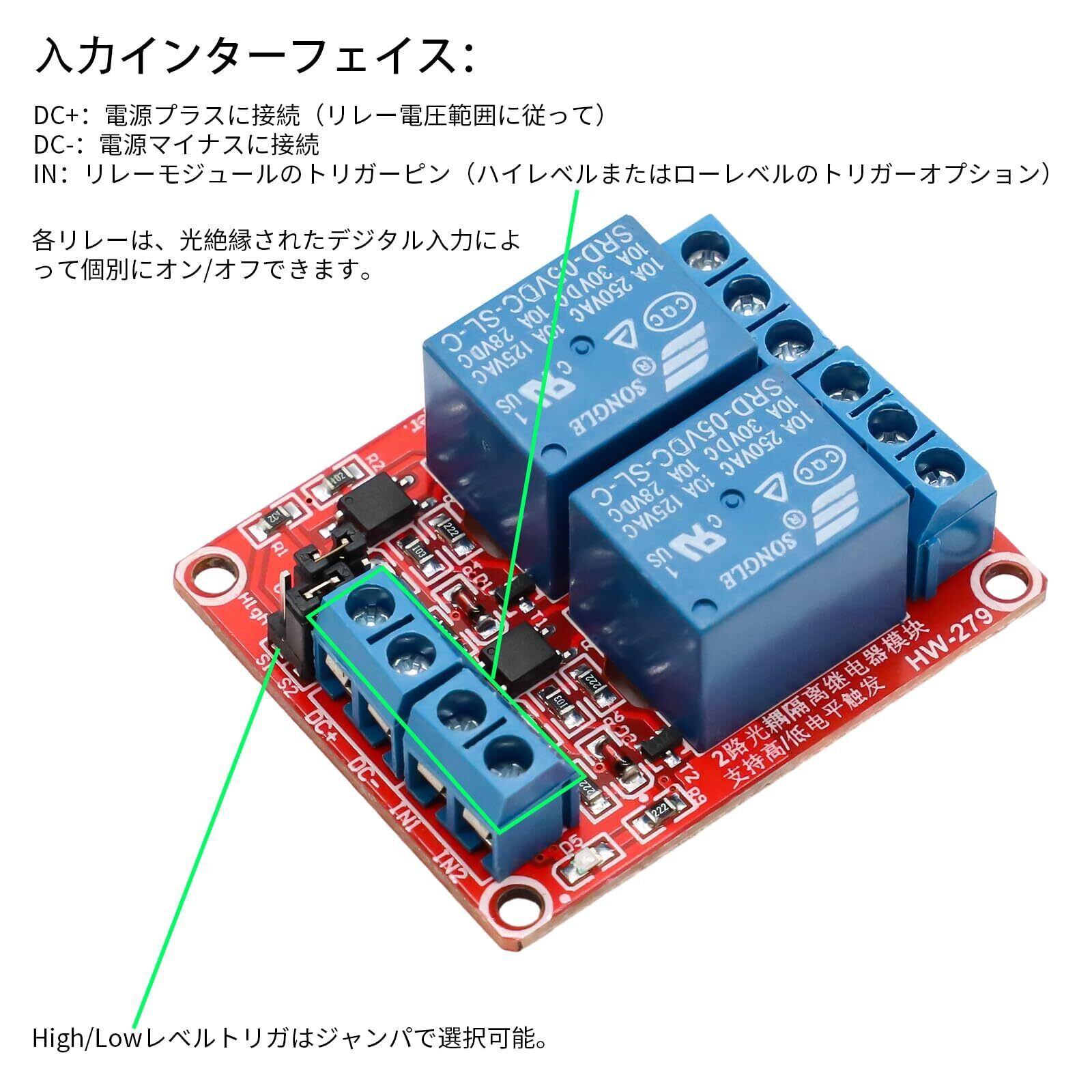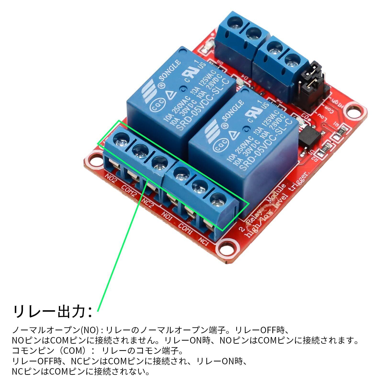 RUIZHI 2個 リレーモジュール高低レベル トリガー 拡張ボード Raspberry PiArduino用 (5V 2チャンネル)