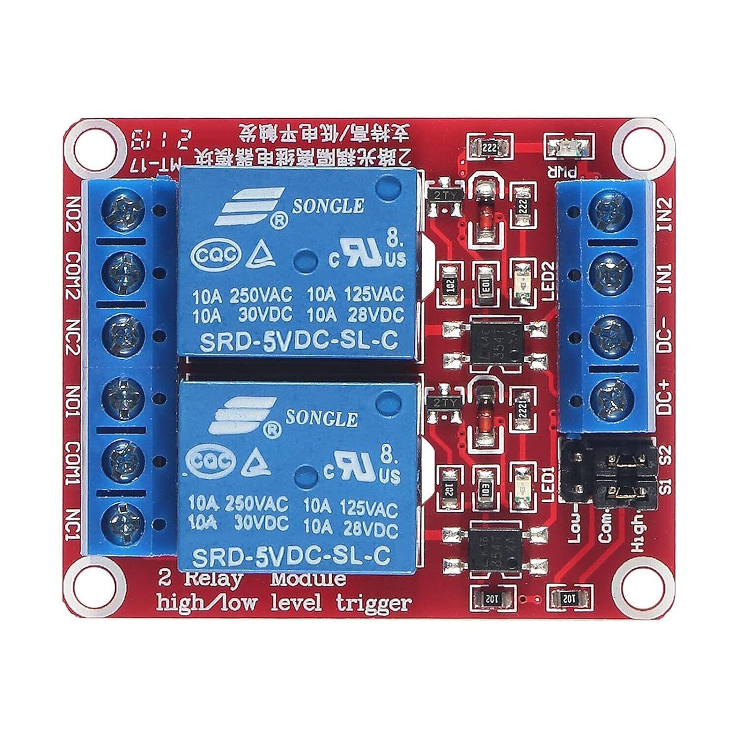 は2チャンネル絶縁5V10Aリレーモジュールであり、各リレーは光絶縁デジタル入力によって個別にオン/オフを切り替えることができます。標準インターフェースはマイクロコントローラーに直接接続でき、Arduinoなどのさまざまなマイクロコントローラーによって直接制御できます。 AVR、PIC、ARM、DSPなど、とでも便利です。