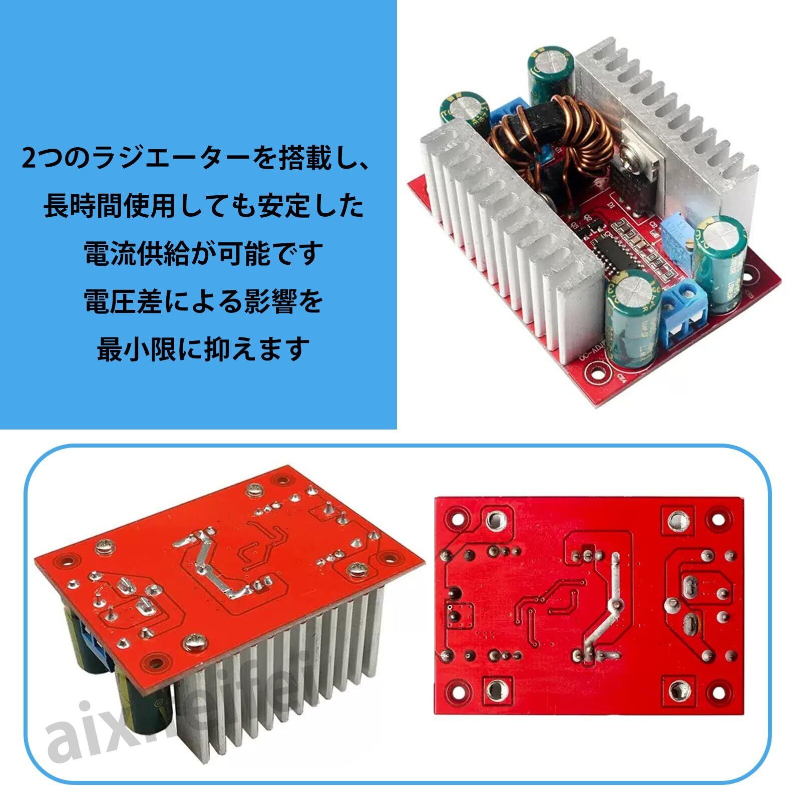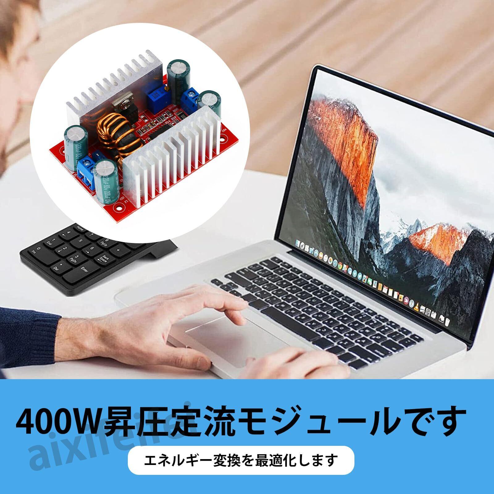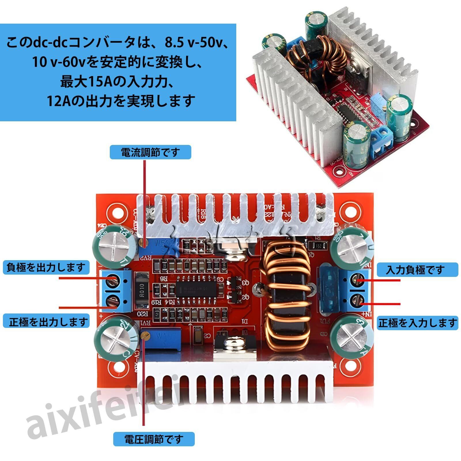 DC-DC昇圧コンバータ 400W 昇圧モジュール 15A 最大入力 12A 出力可能 デジタルデバイス対応 モジュール 8.5V-50Vから10V-60Vへ変換ヒートシンク付属 多用途 LEDドライバ兼用