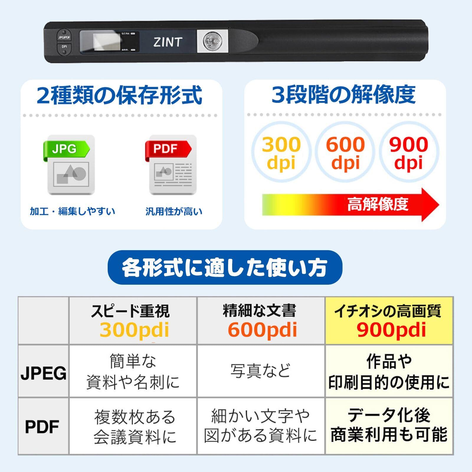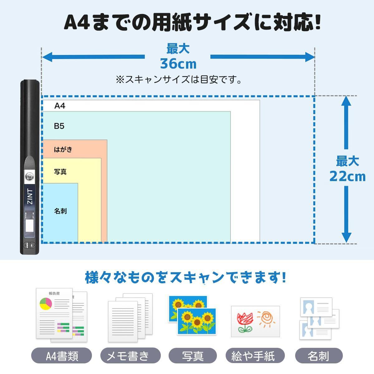 ハンディスキャナー A4対応 900DPI モバイルスキャナー OCR機能搭載 JPG/PDF保存 ドキュメント・写真・本・名刺・書籍対応 ポータブル 軽量 電池式 日本語説明書付き