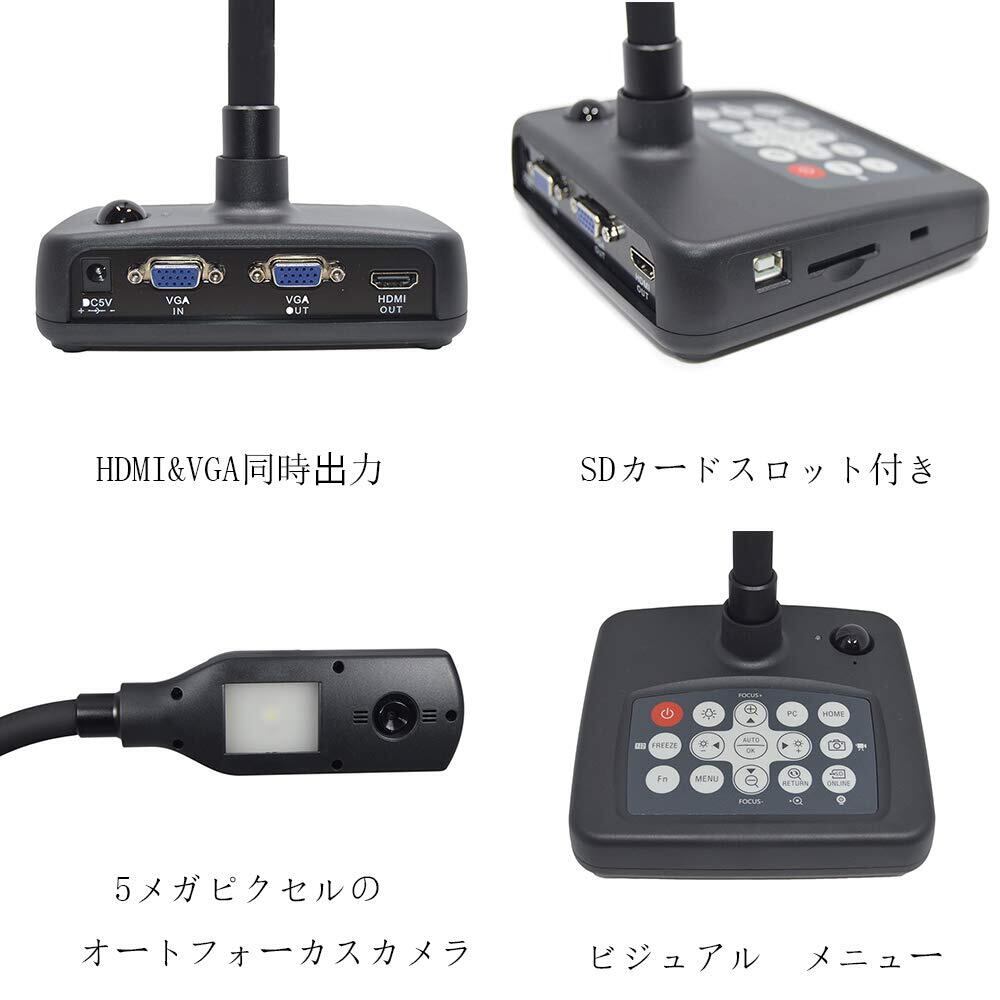 AOWLONG 書画カメラ 実物投影機 PCレス機能 教材提示装置 光学16倍 30fps動画 内蔵マイク LED照明 オートフォーカス HDMI/VGA/USB出力 コンパクト