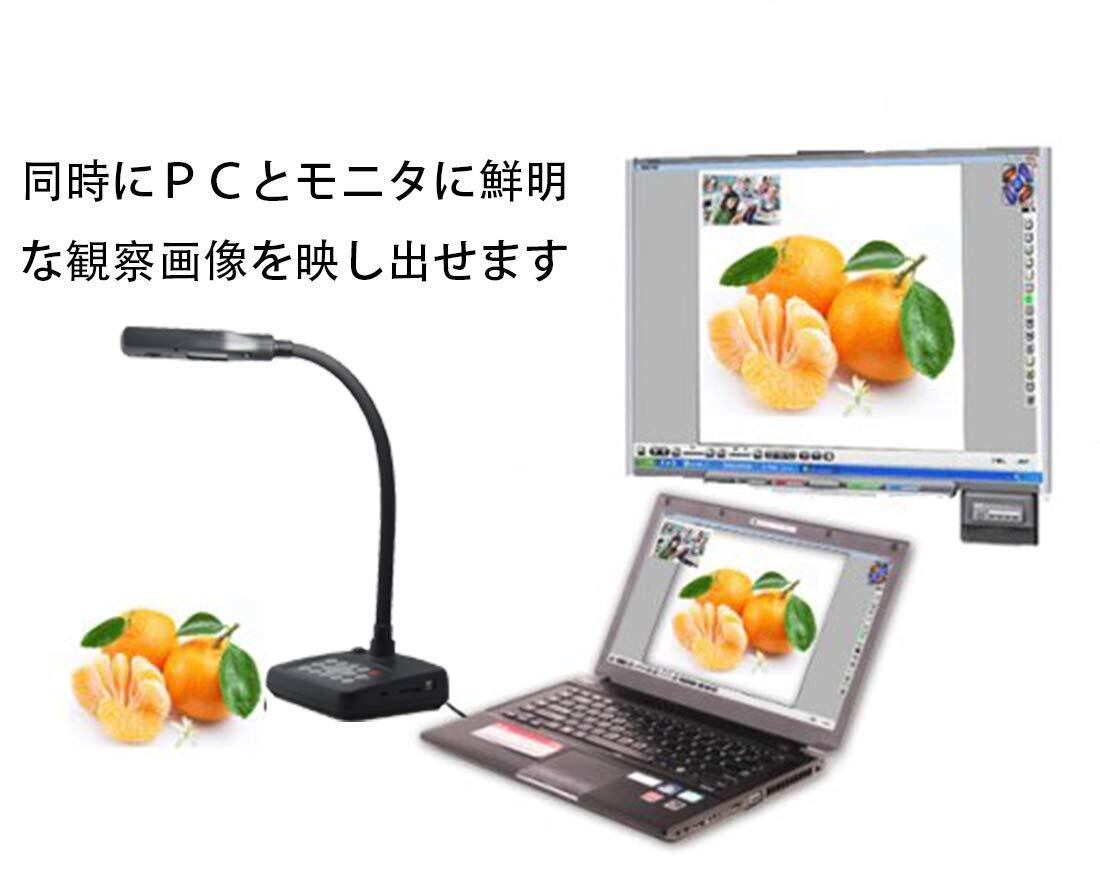 パソコン不要で、動画・静止画が撮影できる:SH5200は映像をモニターなどに出力するだけでなく、静止画・動画の撮影を行うことができるので、実験中の様子や、プレゼンテーションの様子を記録することもできます。 また、内蔵マイクを利用して、音声付き動画を撮影することもできます。