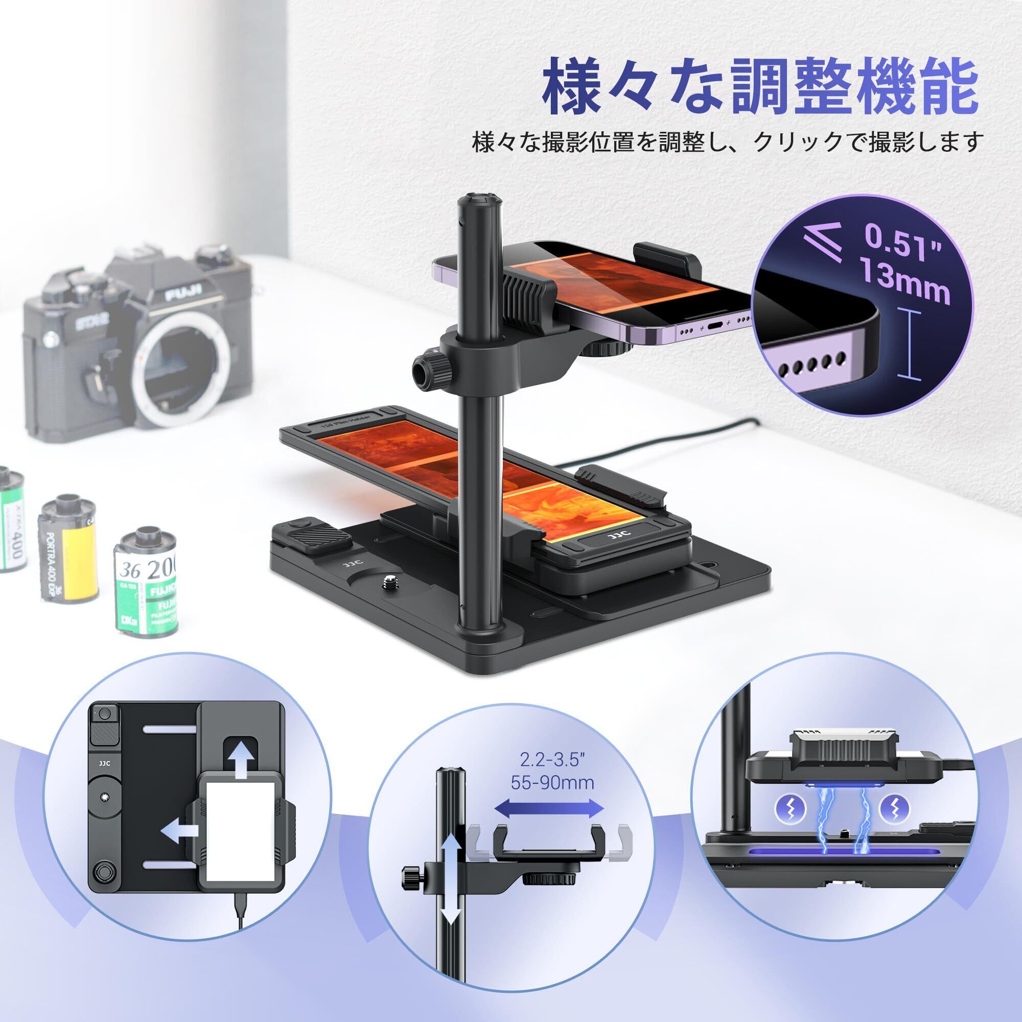 JJC モバイル スマホ フィルムスキャナー 35mm / 120 フィルムデジタイズアダプター + LEDライト セット ホルダー付き ネガ デジタル化 フィルライト 11段調光可能 データ化