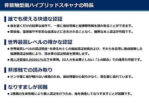 非接触型指ハイブリッドスキャナ HS100-10です。 使用する為には、 認証ユーティリティーソフトUJF371-12が必要です。 認証ユーティリティーソフトUJF371-12をお持ちのお客様に購入をお勧めします。 非接触で指紋情報と指静脈情報を一度に読み取り、厳格な個人認証が可能なスキャナです。 スタンドアロン環境やActive Directory環境でOSログオンやスクリーンセーバロックの解除を 行うことができます。