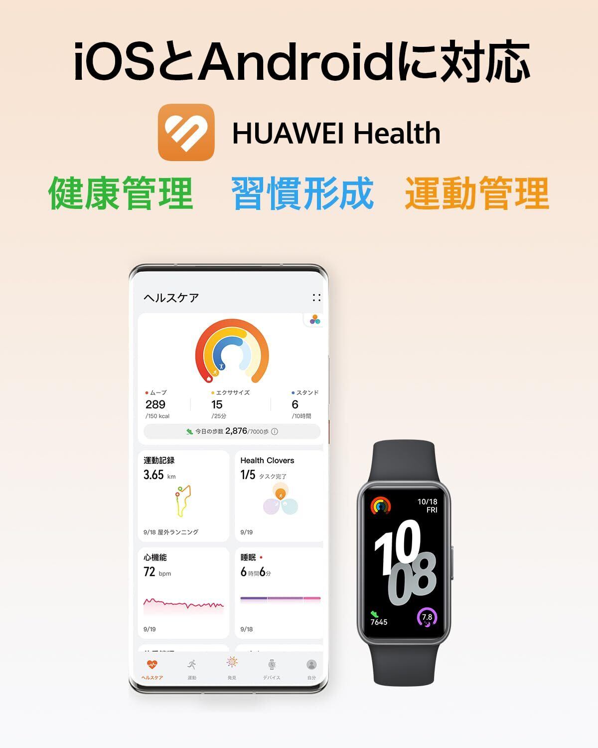 HUAWEI Band 10 スマートウォッチ 快適な付け心地 情緒モニタリング 24時間睡眠管理 14日間持続バッテリー 急速充電 LINE通知 睡眠時呼吸乱れ検知 薄型軽量 カスタマイズ可能な情報表示 フルオロエラストマーベルト iOS/Android対応 ブラック