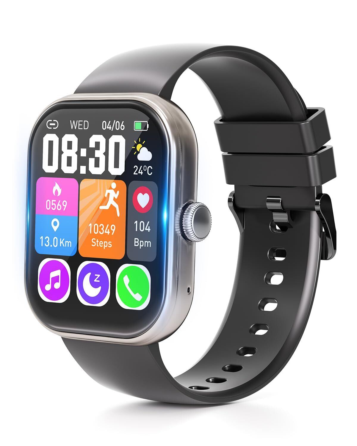 スマートウォッチ【稼働時間突破!業界初1000mAh電池&保護フィルム付属】Smart Watch 活動量計 腕時計 iPhone対応 アンドロイド対応 Bluetooth6.0 2.01インチ大画面 通話機能付き メッセージ通知 IP68生活防水 長持ちバッテリー 薄型 軽量 スポーツウォッチ 音楽再生 多機能スマートウォッチ 多種類運動モード 多種類文字盤 プレゼントに最適 (ブラック)