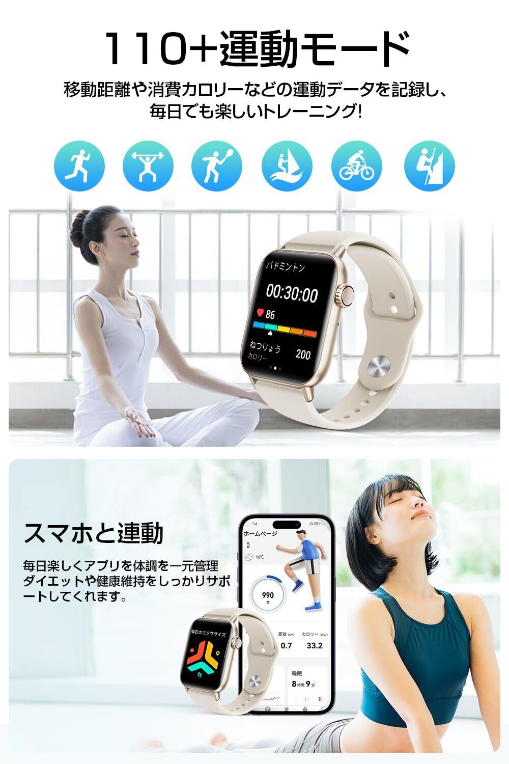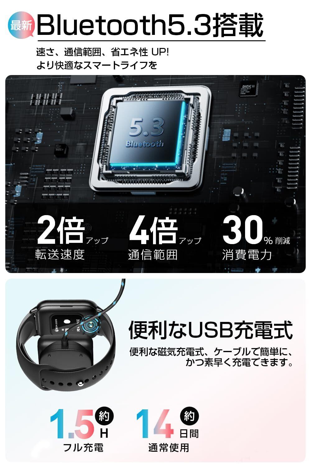 【Bluetooth 5.3 どこでもつながる快適通信】 新たにアップグレードされたBluetooth 5.3を搭載し、iphoneとアンドロイドの両方で対応可能。メッセージや音楽、健康データの同期がよりスムーズになり、端末が離れた場所にあっても安定した接続を維持します。さらに、通話システムも新たにアップグレード。スマートウォッチで連絡先の確認、ダイヤル操作が可能になり、より便利な日常生活をお届けします。