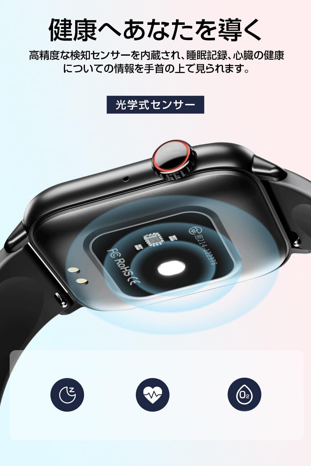 【スマートウォッチ 24時間のモニタリング】 高性能センサーを搭載し、歩数計算、消費カロリー計算、生理周期予測などを実現。スマートリマインダー機能もあり、水分補給や長時間の座りすぎを適時にお知らせし、健やかな生活習慣の定着をサポートします。