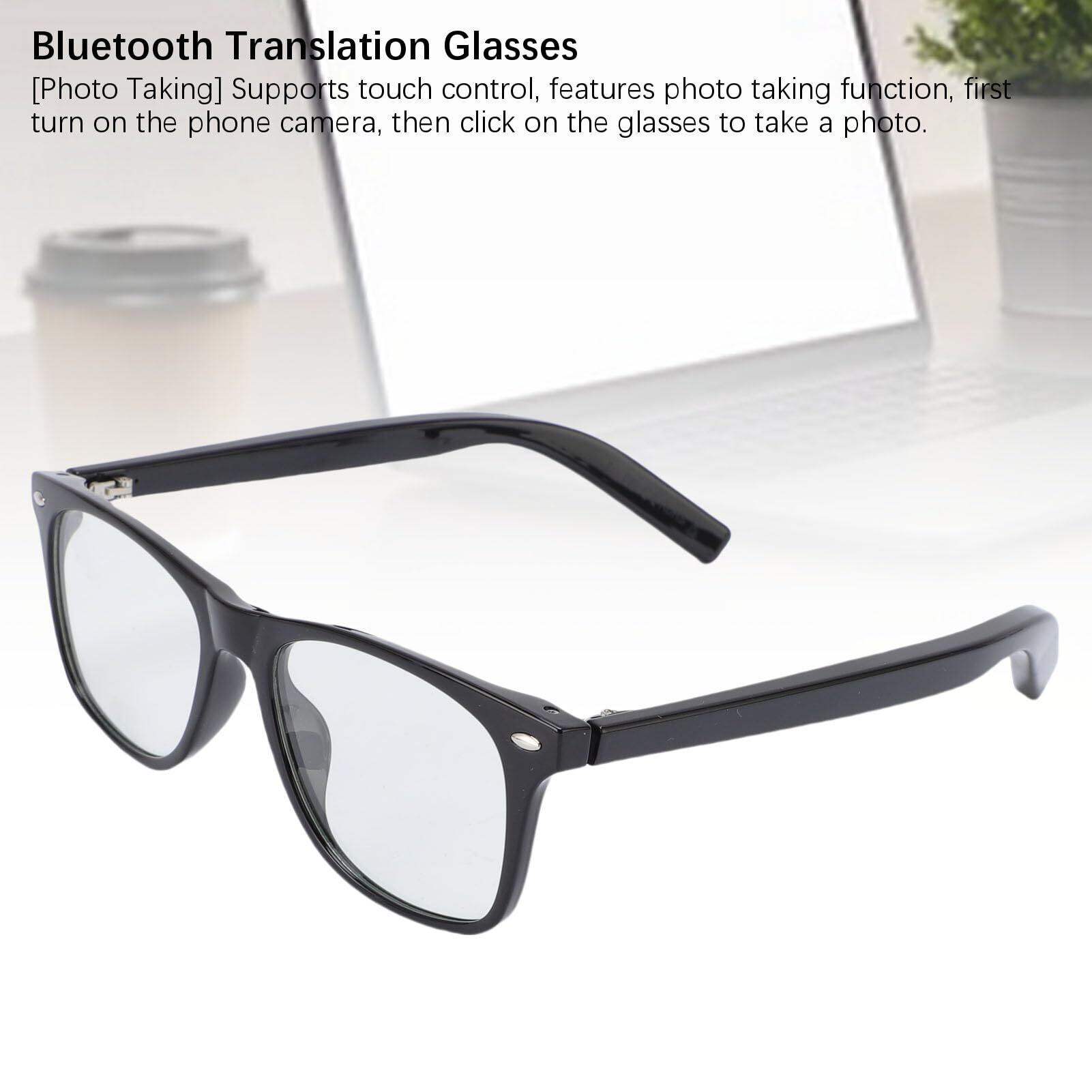AI翻訳男性向けのスマートサングラス、言語翻訳者、Bluetooth 5.3スピーカーとマイク付きメガネ、タッチコントロール、ハンズフリーコール、写真撮影 (黒いフレームクリア)