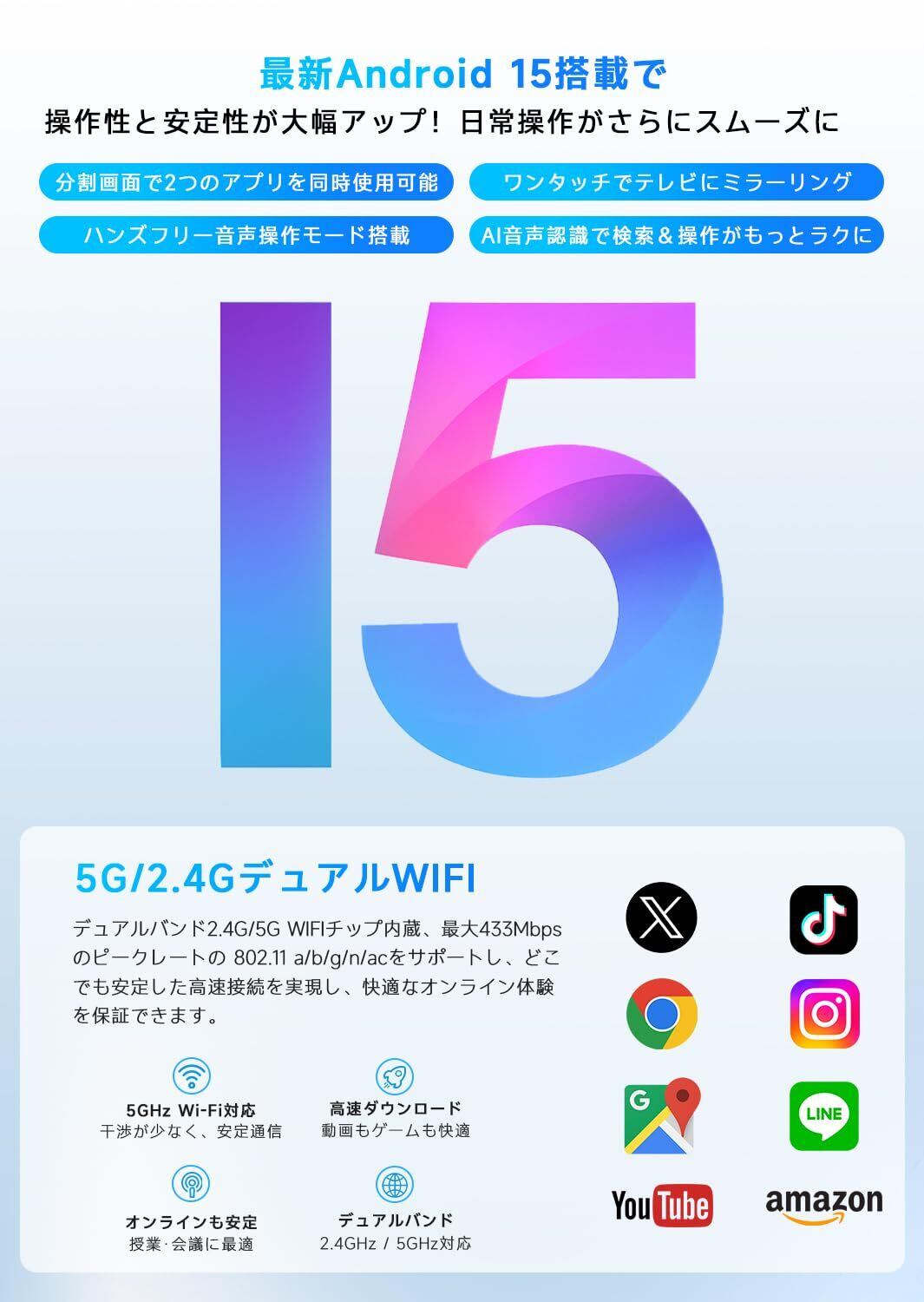 【8MP/5MPデュアルカメラ+顔認証+アイケアモード+GPS搭載】800万画素メインカメラと500万画素フロントカメラを搭載し、風景写真からZoom会議までクリアな画質を実現。顔認証ロックなら瞬時解除でき、朝の忙しい時間や外出時もスムーズに使用可能。GPS/北斗/QZSSなど全衛星測位システムに対応し、旅行や車載のナビゲーションも安心。さらにブルーライト軽減機能搭載で、夜遅くまでの漫画閲覧や動画視聴でも目に優しい設計となっています。高精度カメラ、高速認証、正確な位置情報、目の保護機能と、あらゆる生活シーンに対応するコスパ最強 タブレット wi-fiモデルです。