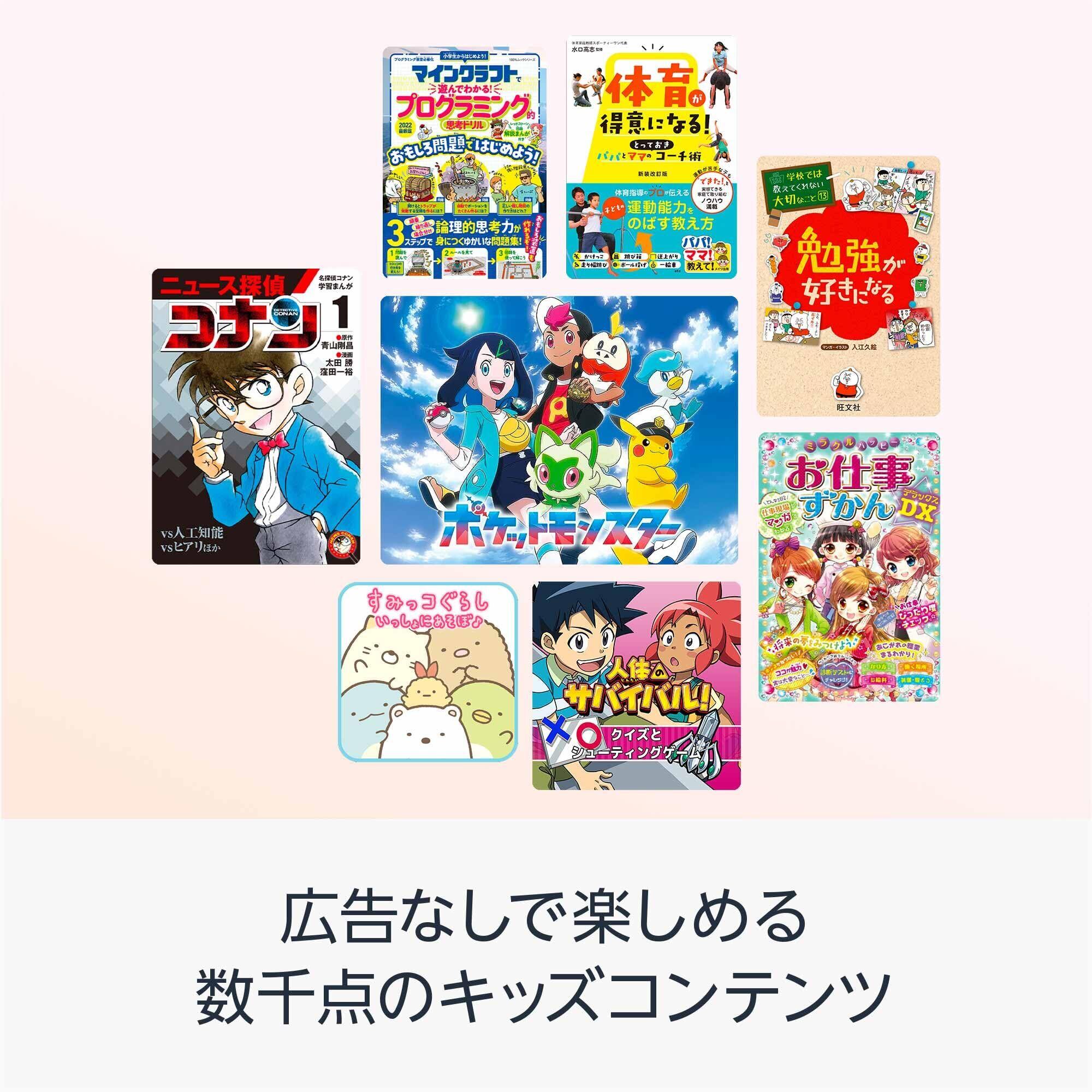 【 Kids+が間使い放題】プログラミングアプリや小学生新聞、英語、漢字、算数などの学習アプリ他、学習まんがや児童書など2千冊以上の本、動画など数千点のキッズコンテンツが広告表示なく楽しめます。