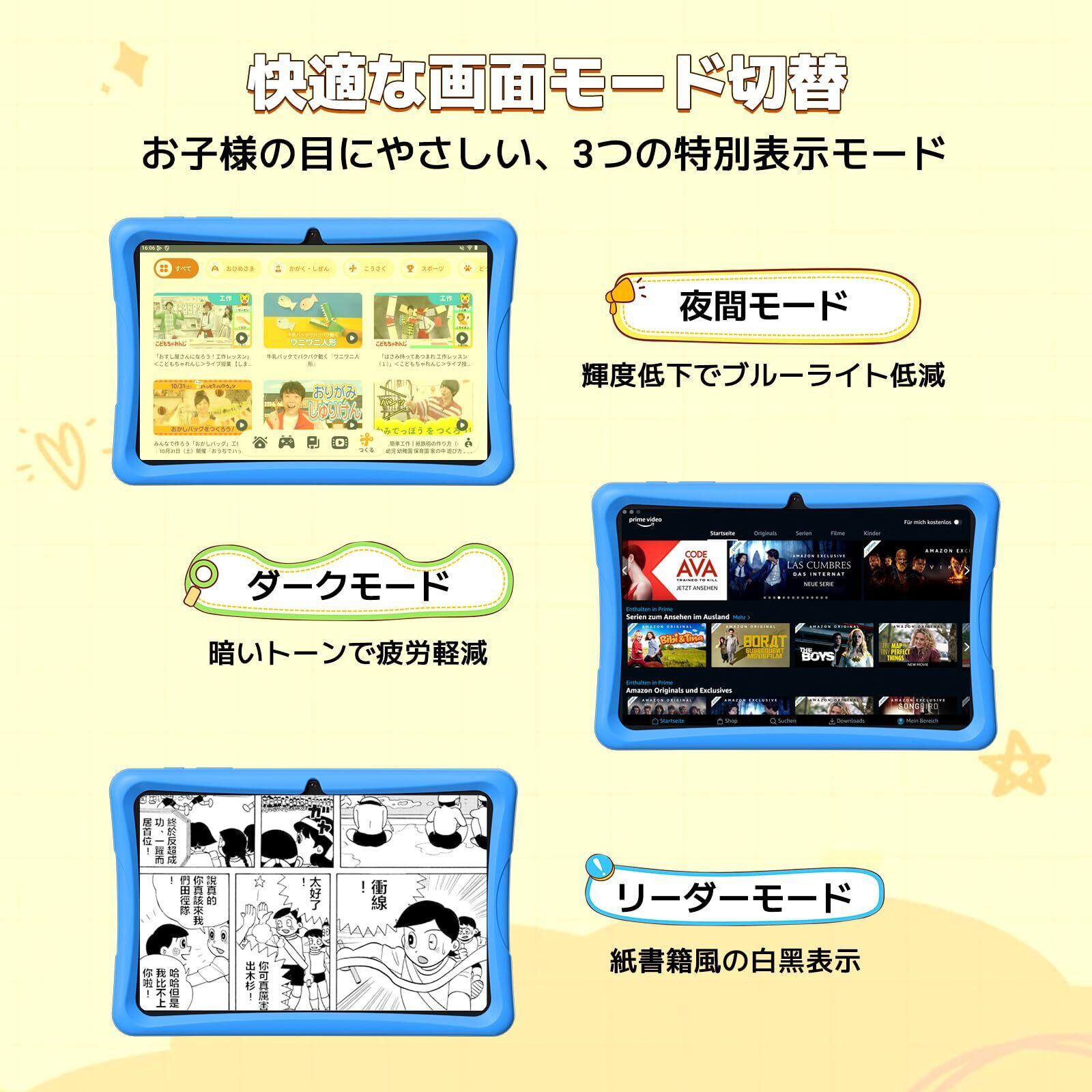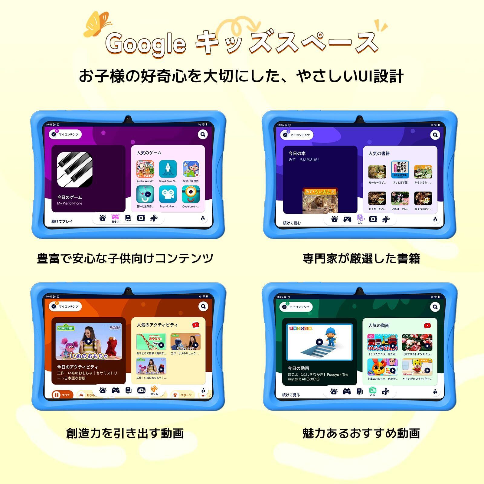 【2025年 TABWEE K10 キッズタブレット10インチ Wi-Fiモデル、キッズスペース&YouTube Kids 対応&iKids対応、Android 15タブレット、12GB RAM+64GB ROM +2TB TF拡張、USB充電 5G WiFi 、子供用 知育アプリ使い放題、利用時間制限、軽量EVAケース付き 落下防止、タッチペン付き、プレゼント 日本語説明書付 Blue