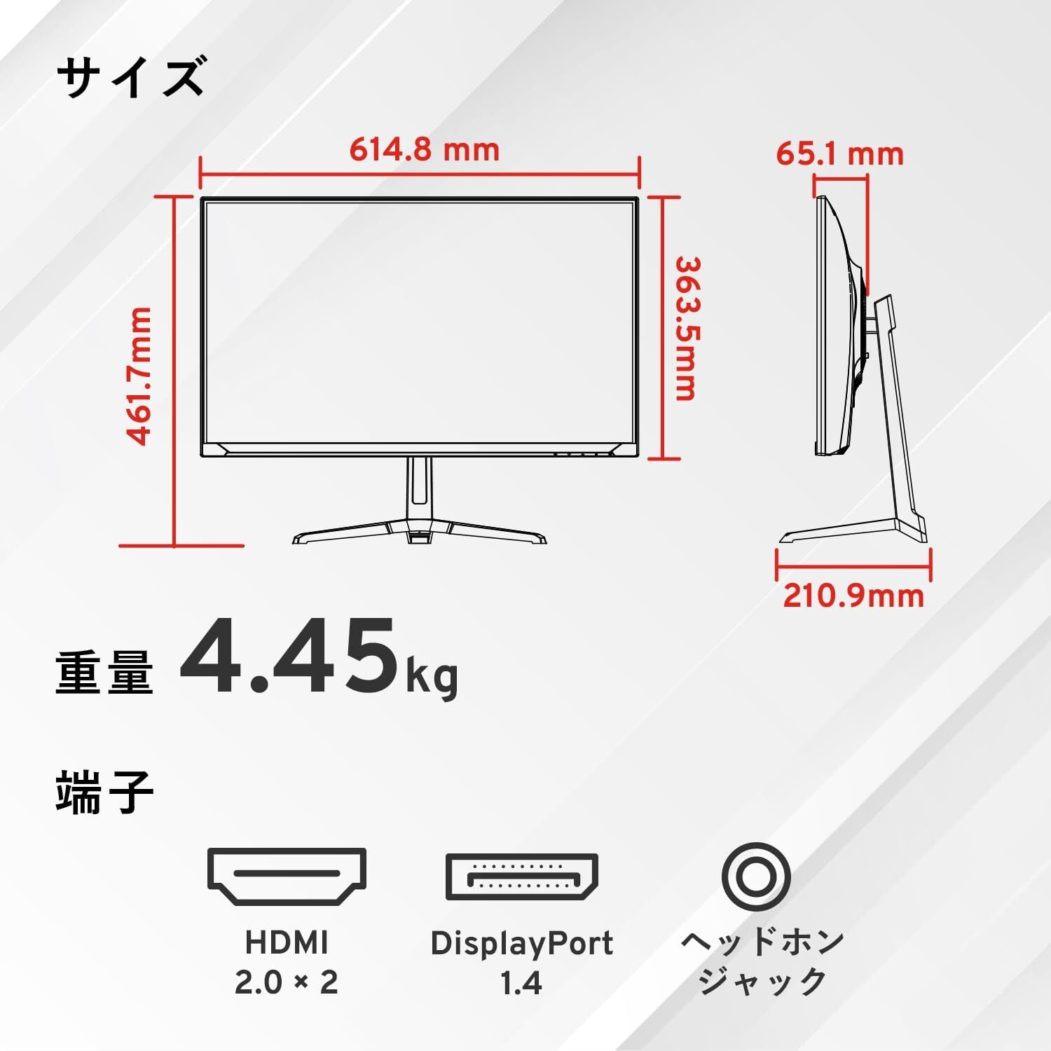【端子】 HDMI 2.0 ×2 / DisplayPort 1.4 ×1 / ヘッドホンジャック