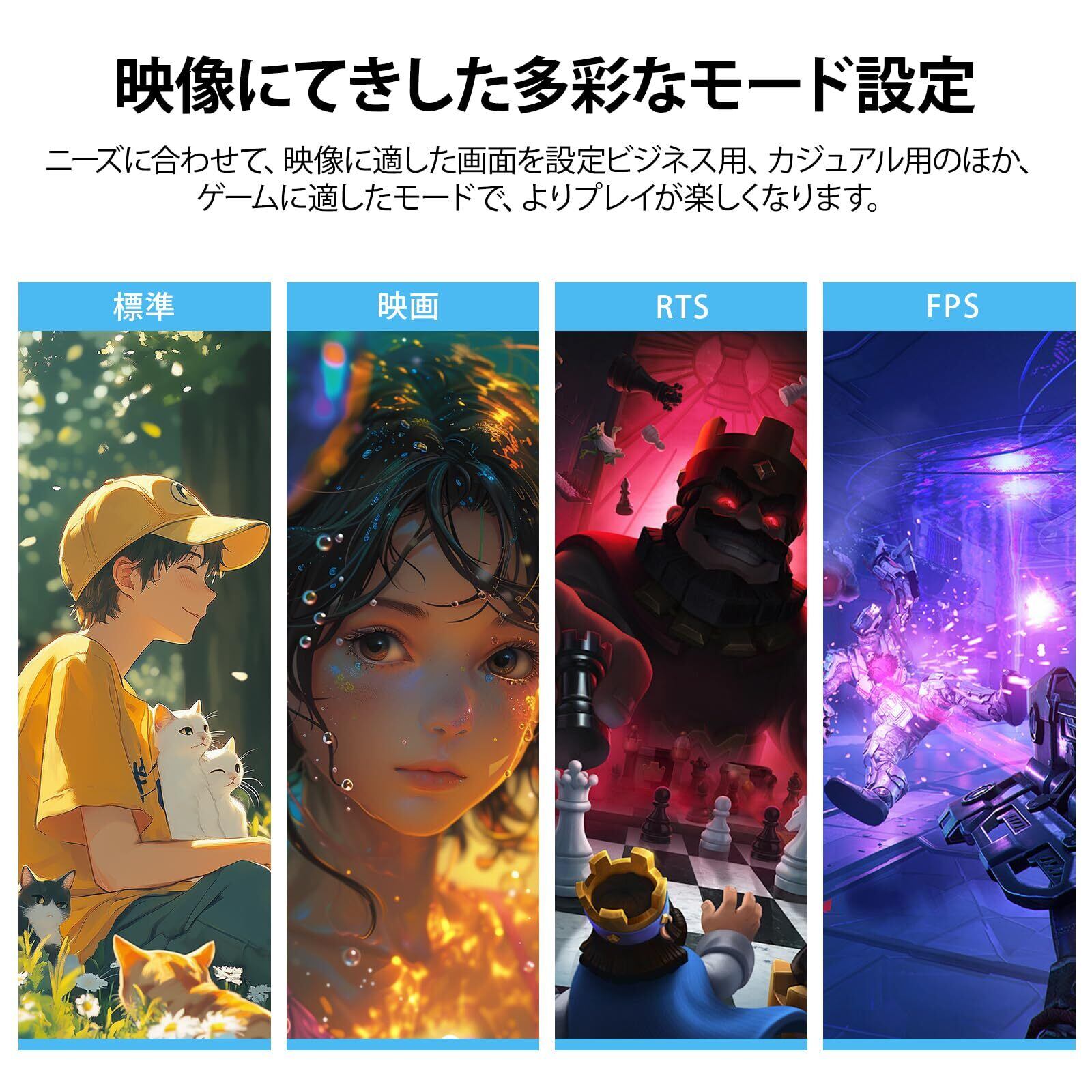 [その他の機能] pcモニター上下角度調整は-5°~15°、アイケアブルーライト軽減・フリッカーフリー,RTS/FPS/Adaptive Sync