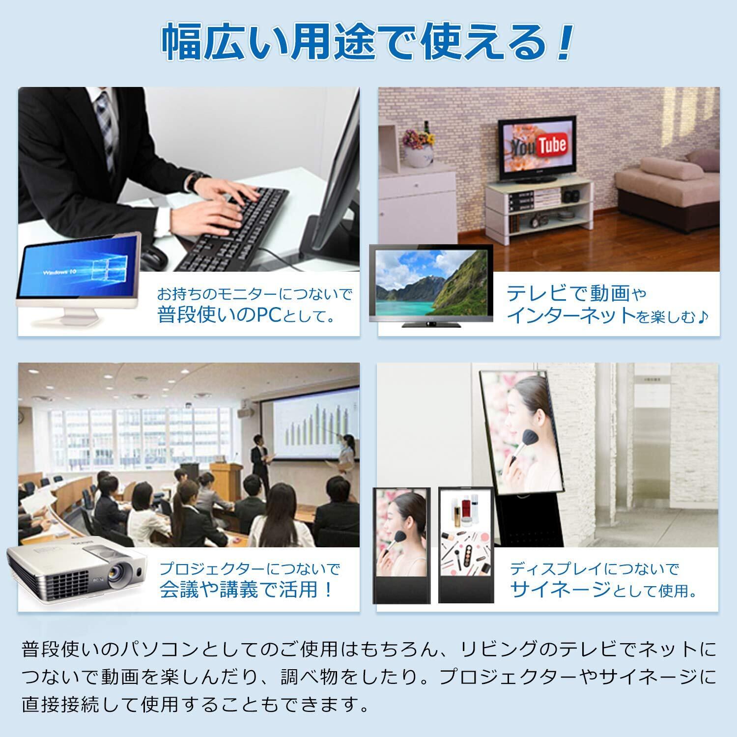 【幅広い用途で使える!】スティック型pc「M1S+」は、普段使いのパソコンとしてのご利用はもちろん、リビングのテレビでネットにつないで動画を楽しんだり、調べ物をしたり、プロジェクターやサイネージに直接接続して使用することもできます。※一部の大型モニターに接続をした際、映像出力がされない事象を報告いただいております。モニターとの相性により、ご使用ができない場合につきましては、サポート・対象外となります。予め、ご了承ください。