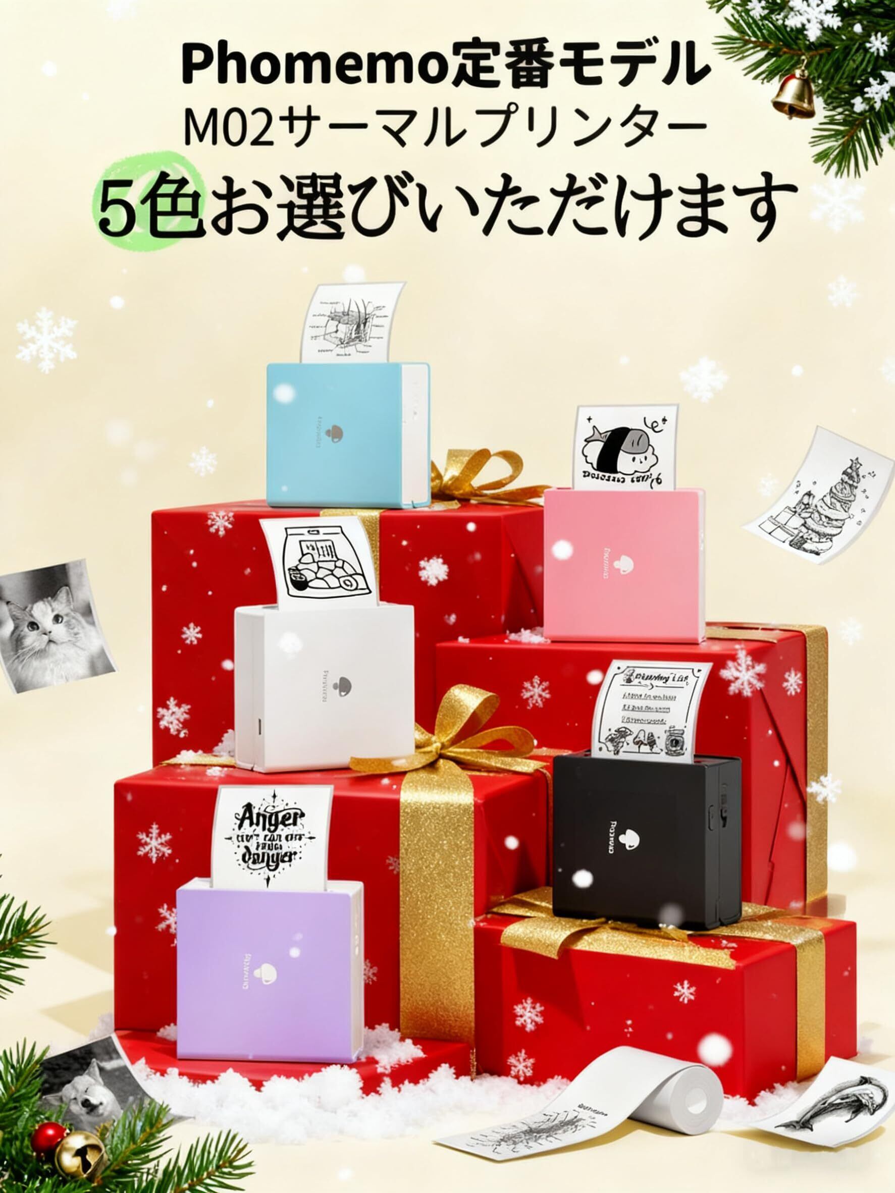 Phomemo M02 ミニプリター スマホ対応 サーマルプリンター モバイルプリンター フォトプリンター ポータブル式 感熱プリンター ポケットプリンター メモプリンター 付箋プリンター シールプリンター 203DPI Bluetooth接続 作業計画/写真/メモ/手帳/付箋/ワード/ウェブ用 在宅勤務 自宅学習 クリスマス プレゼント 小券印刷 多国言語対応APP 日本語取扱説明書