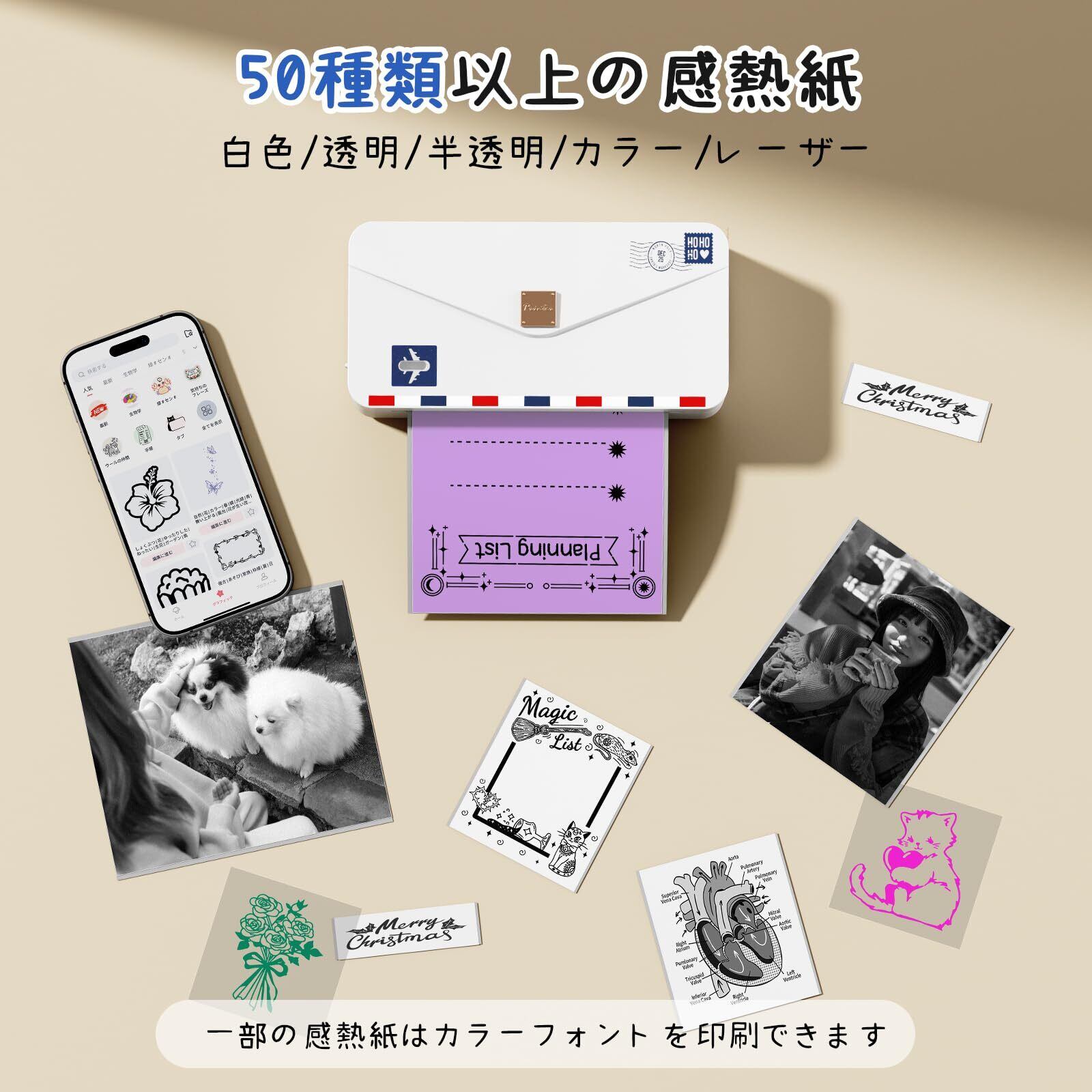 さまざまなペーパースタイル- 50種類以上のペーパーに対応しています。ホワイト/カラー/透明/半透明/シャイン感熱紙。また、ステッカーやノンステッカーも選択可能です。どんなスタイルにするかは自由です。