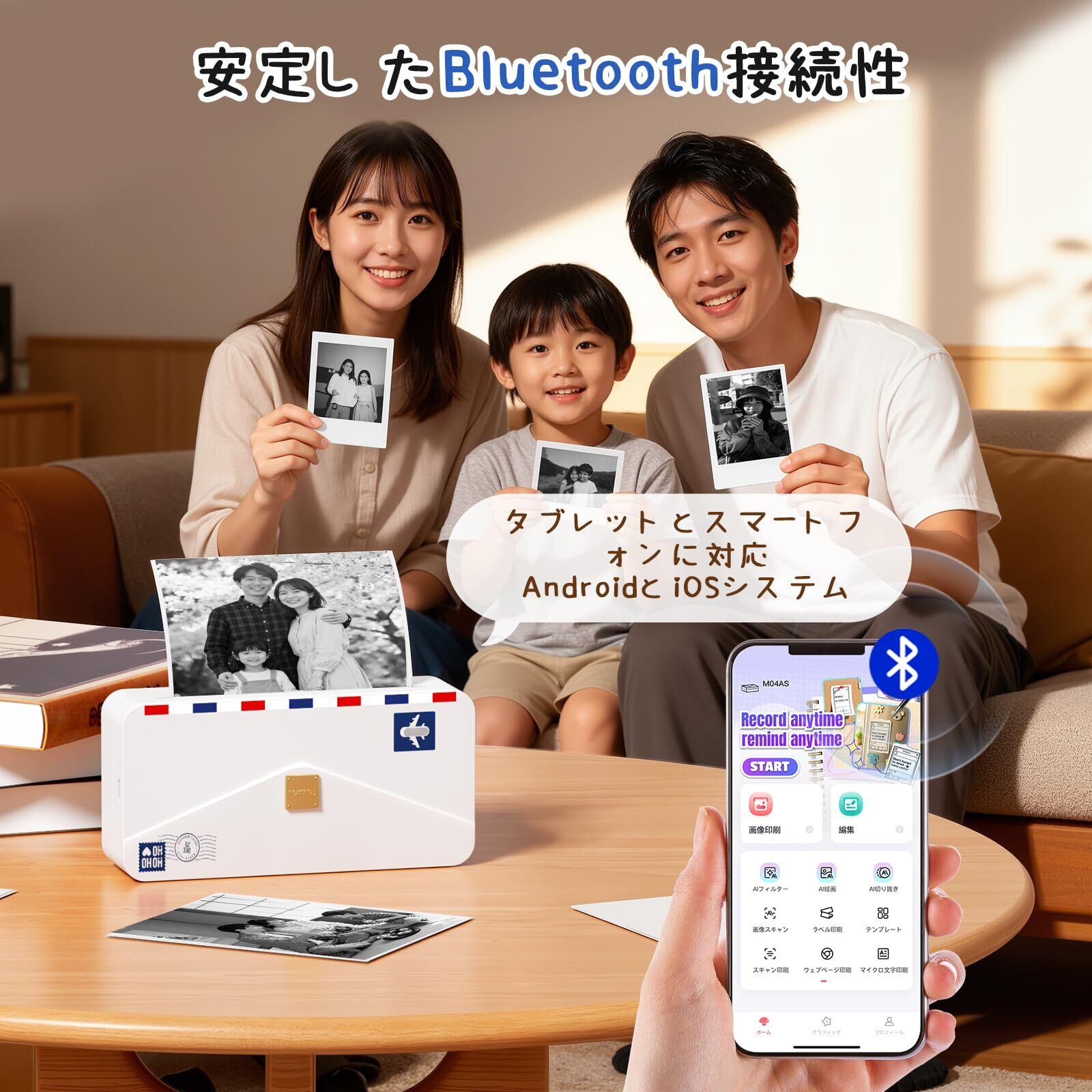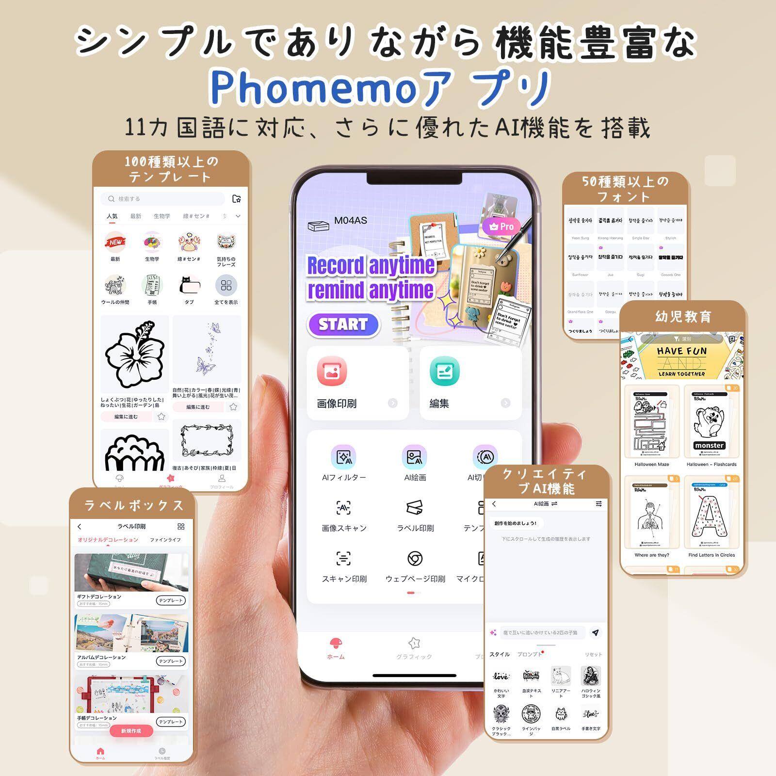 Phomemo M04AS ポータブルサーマルプリンタ スマホプリンター 15/53/80/110mm感熱紙対応 付箋プリンター ラベルプリンター 300dpi 写真/ノート/メモ/クリスマスギフトに最適です 110mm透明感熱紙1巻付属 日本語対応