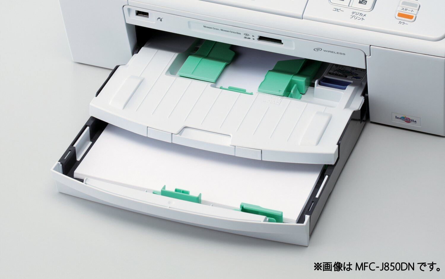 薄型トレイにA4などの用紙とL判などの小サイズ紙を2種類同時にセット可能。