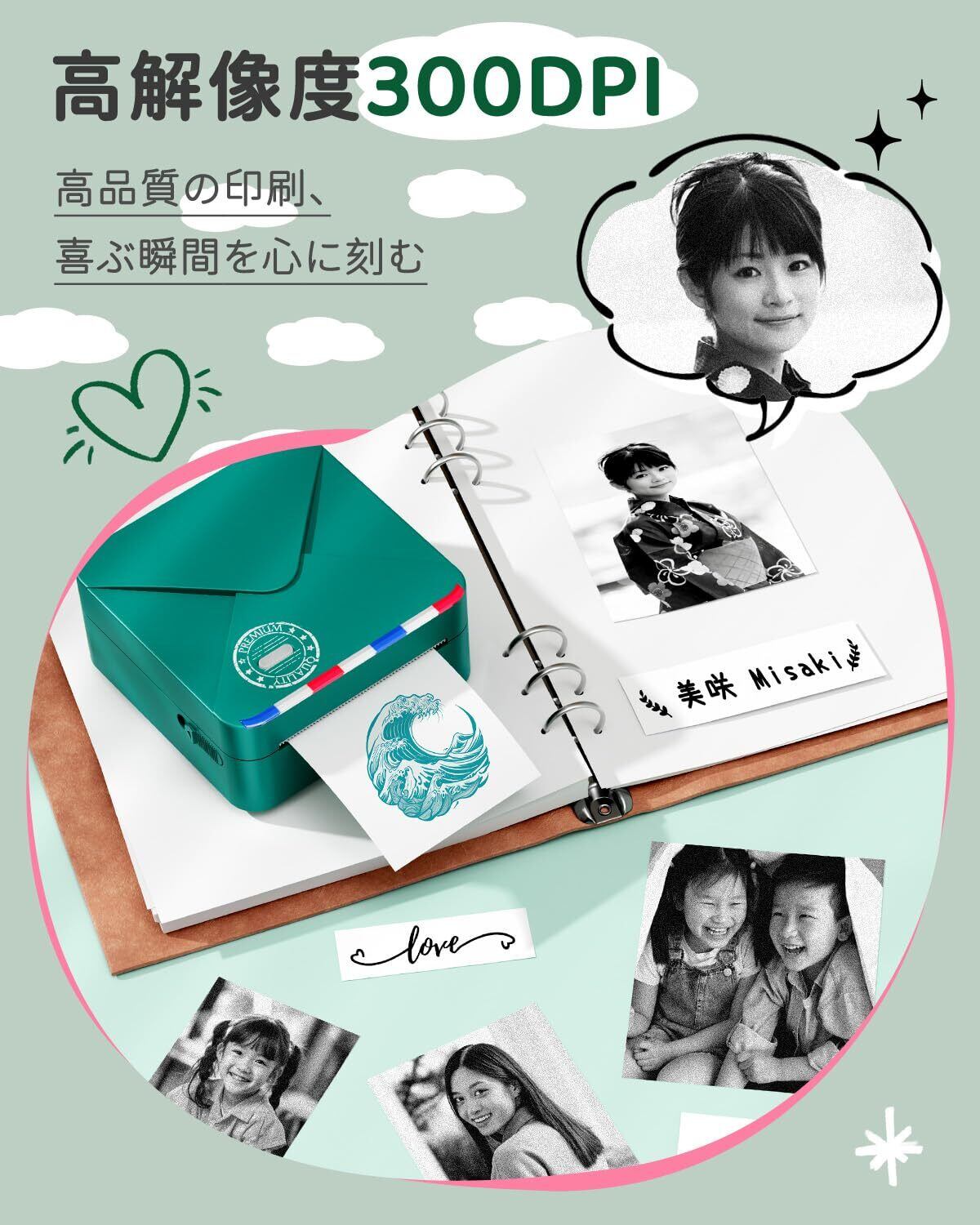 [より鮮明な印刷品質]Phomemo M02Sサーマルプリンターは日本製の 300dpi プリントヘッドを採用し、1 インチを 300 個の点で精密表現。写真も、テキストも、何でも細部まできれいに印刷できます。印刷の濃度も調整可能で、より鮮明な印刷品質を提供します。53 mmの白地シールx1巻、25 mmの透明シールx1巻、25 mmの半透明シールx1巻、15 mmのパープルシールx1巻、15 mmのオレンジシールx1巻と15 mmのピンクシールx1巻が含まれていますので、届きましたらすぐにプリントの魅力を体験いただけます