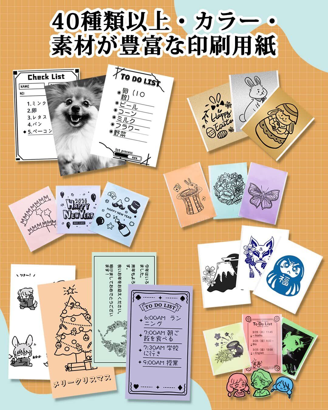 [誰でも楽しめる]単なる印刷機能だけでなく、日常に遊び心を添える楽しみ方が無限大です。ペットの写真を印刷してアルバムを作ったり、お気に入りのキャラクター素材で手帳をカスタマイズしたり、友達へのメッセージをシールに印刷してプレゼントに添えたりできます。料理のレシピカード、家の整理ラベル、子供の学習用フラッシュカードなど、用途を思い思いに広げて、印刷の楽しみを共有できます