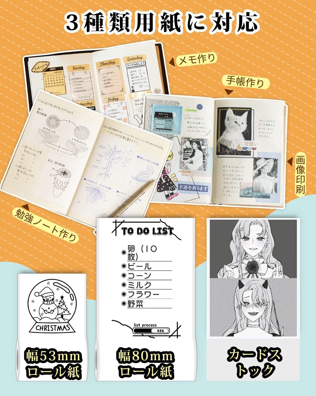 [2サイズ感熱紙に対応]幅 53mm・80mm の感熱紙に対応し、手帳作成、勉強ノート、オフィス文書、整理収納、コラージュ、トラベラーズノートなど、さまざまなシーンで活用できます。授業中の写真やセミナー資料など、データ紛失の不安がある場合でも、撮影後すぐ Phomemo M03 サーマルプリンターで印刷してノートに貼れば、いつでも確認可能になり、データ管理が安心です