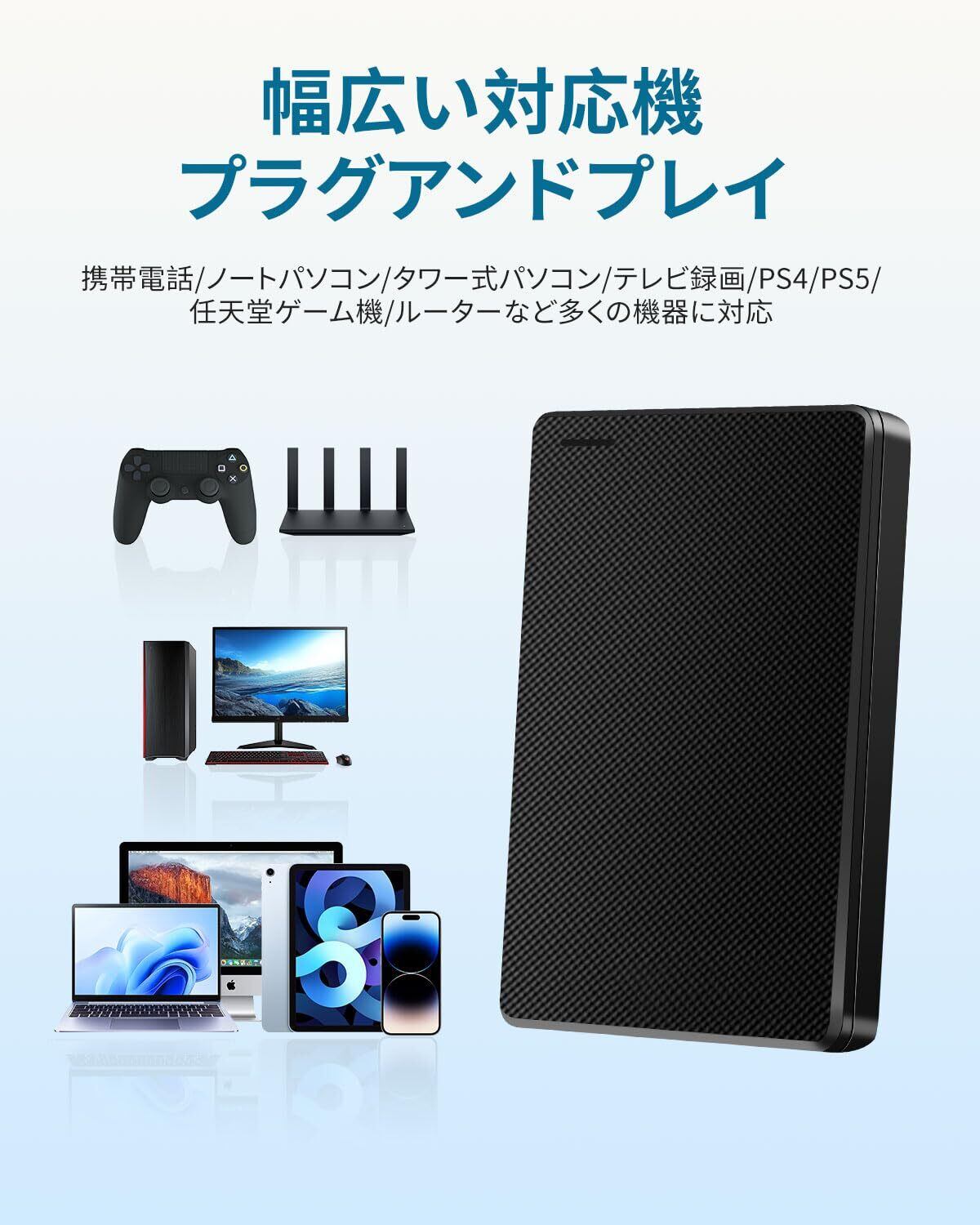 外付けハードディスク 外付けHDD 500GB テレビ録画 超高速データ転送 超薄型 2.5インチ USB3.0に対応 /PC/TV/Mac/PS4/PS5/XBox 携帯便利 収納袋付属
