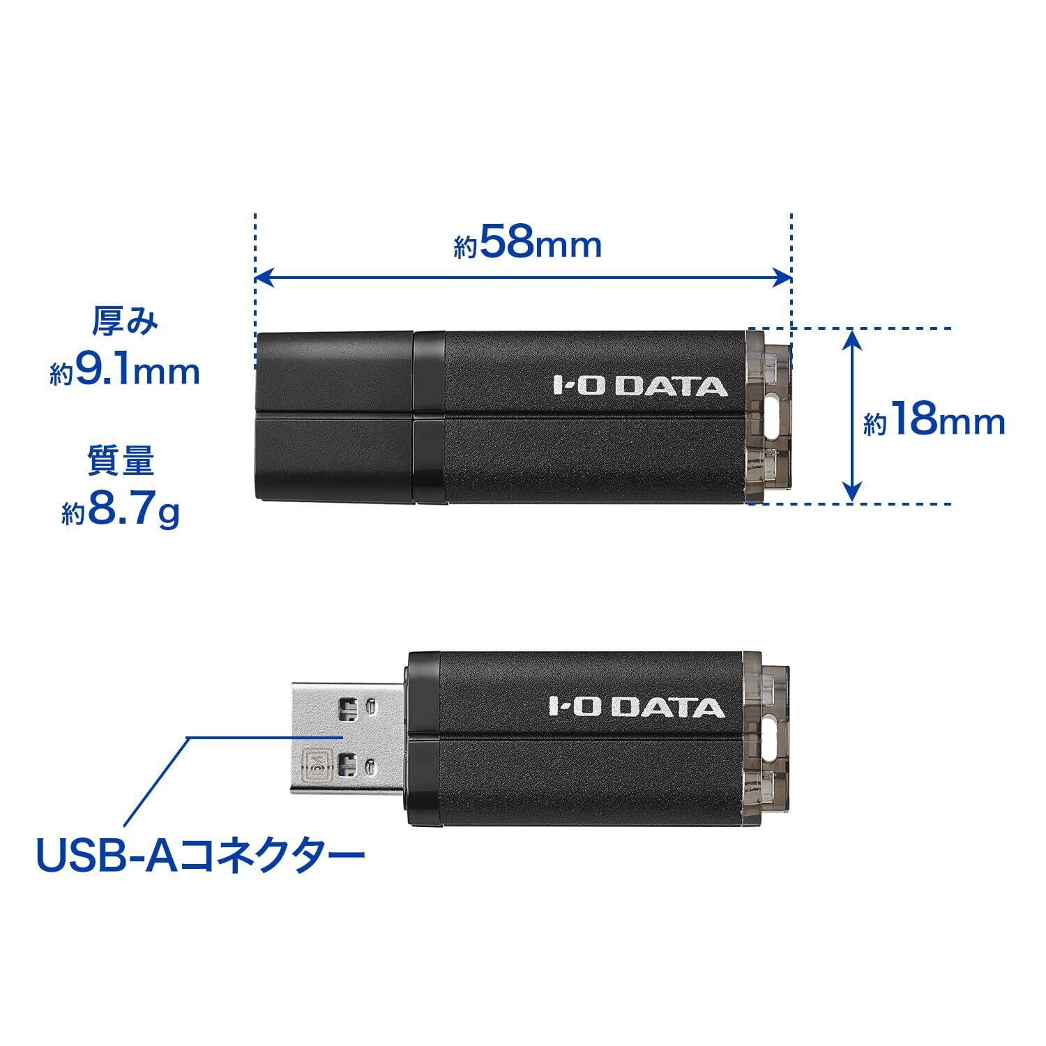 IODATA USBメモリー 128GB Type-A ブラック 5Gbps(Win/mac) PC データ共有 データ保存 バックアップ 日本メーカー MUM-128G/KUE