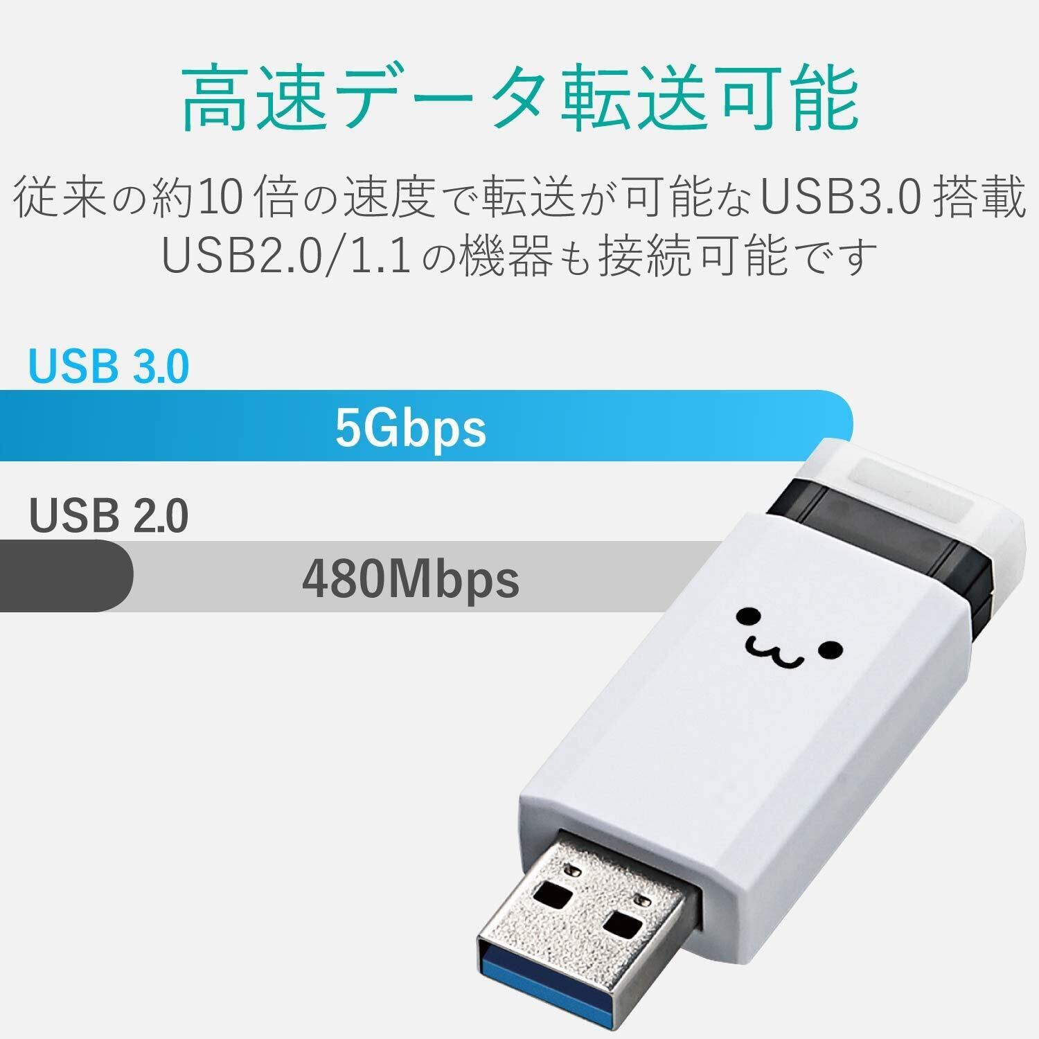 エレコム USBメモリ 64GB USB3.1 & USB 3.0 ノック式 ホワイト MF-PKU3064GWHF