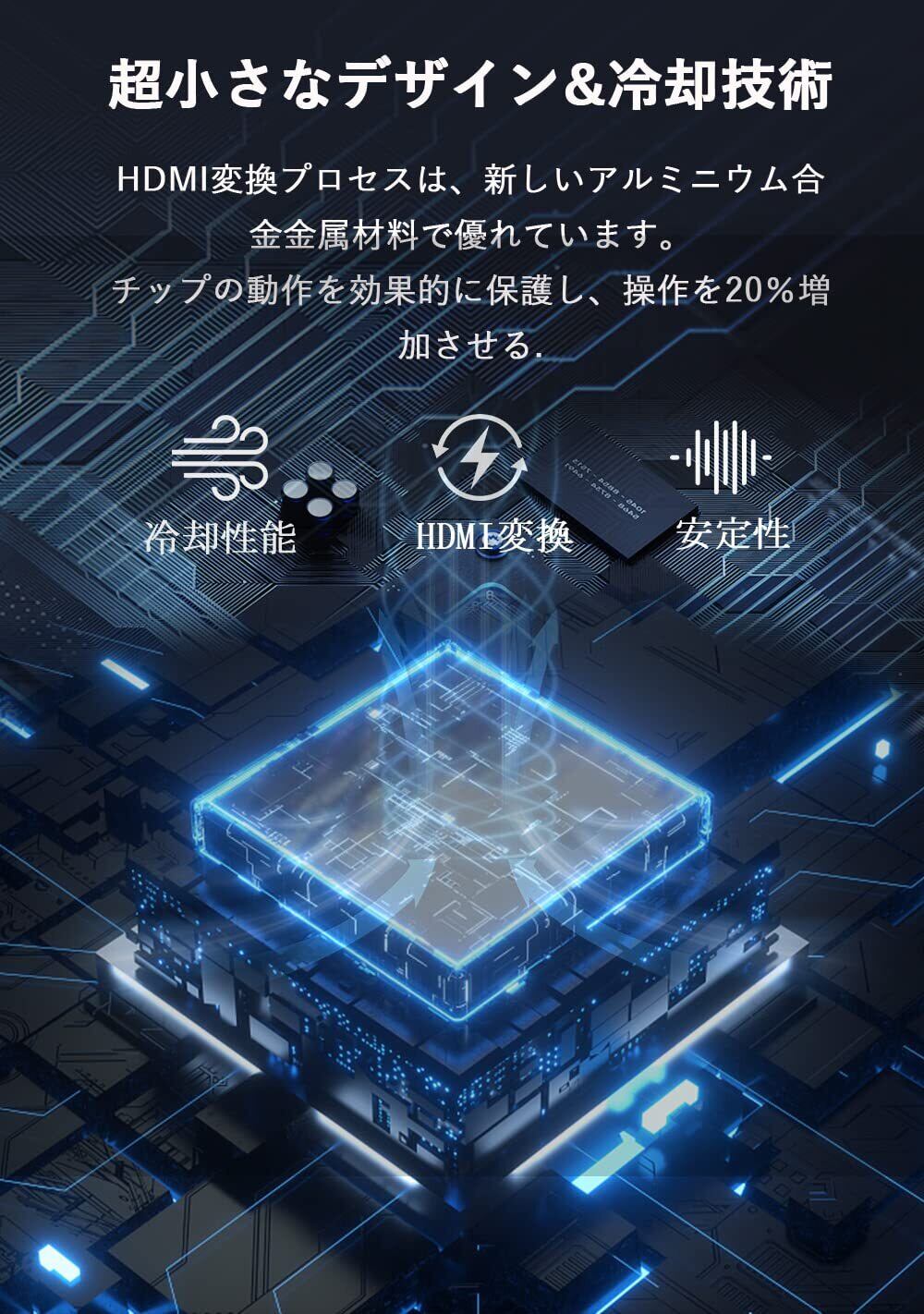 【プレミアムデザイン】小型の設計で、それに持ち運びが便利です。HDMI入力に対応した変換ケーブルを使用することで、さまざまな機器と接続できます。外装は軽量アルミ合金製で、放熱効果が20%アップ。 物理的な冷却により、チップの使用は効果的に保護されます。