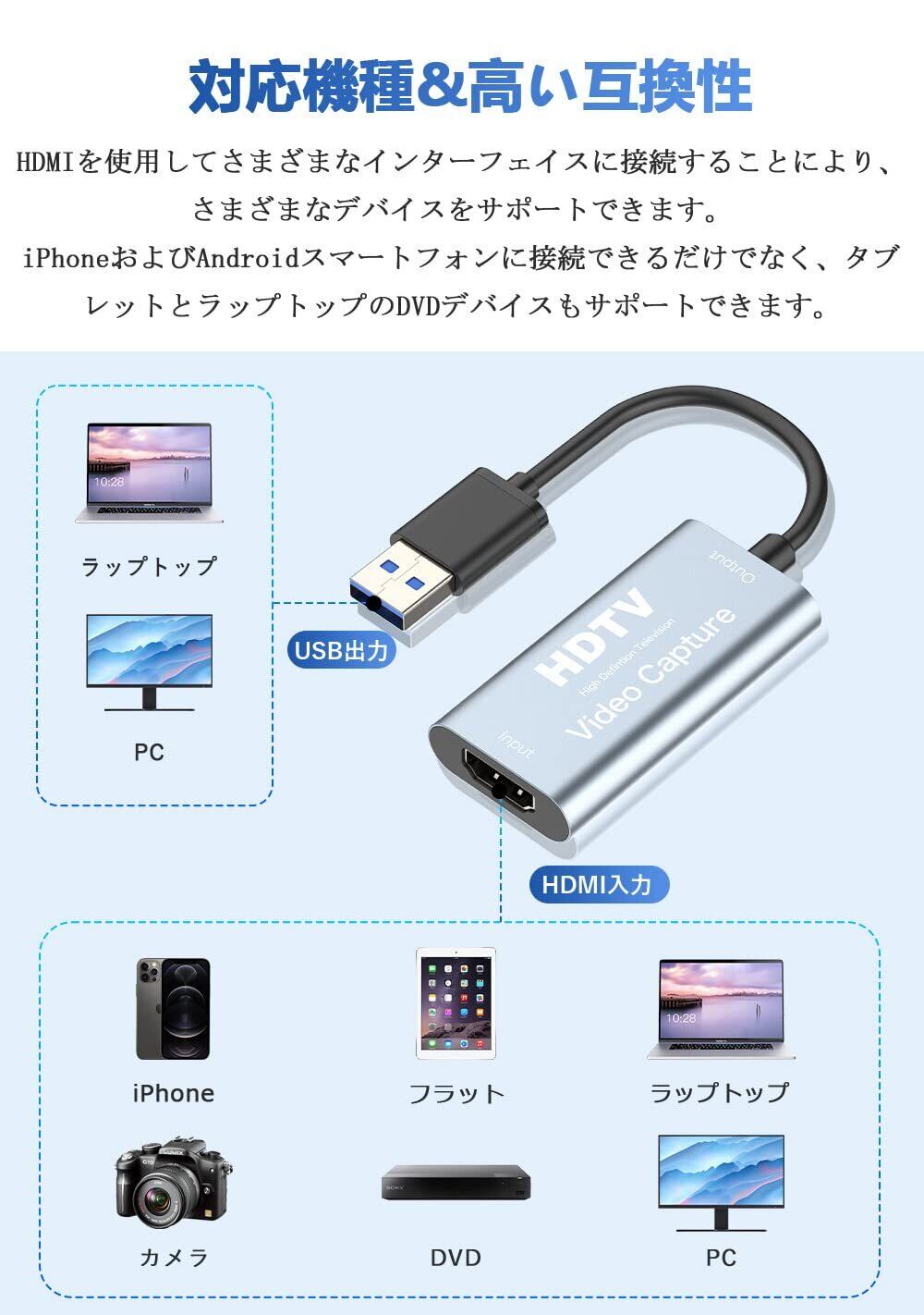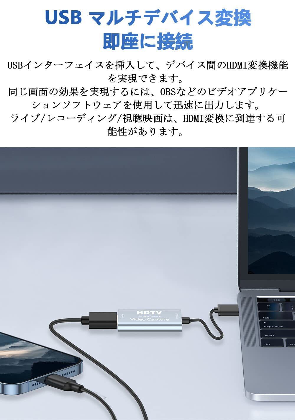 【2025新登場 l キャプチャーボード】 USB3.0 & HDMI 変換アダプタ HD画質録画 HD1080P/4Kパススルー機能 HDMI ビデオキャプチャー ゲーム/ビデオ/ライブ配信用キャプチャー ボード 電源不要 小型軽量 低遅延 Switch/PS/Xbox用サポート Win 7/8/10 Linux OBS Potplayer YouTube対応 日本語取扱説明書付き