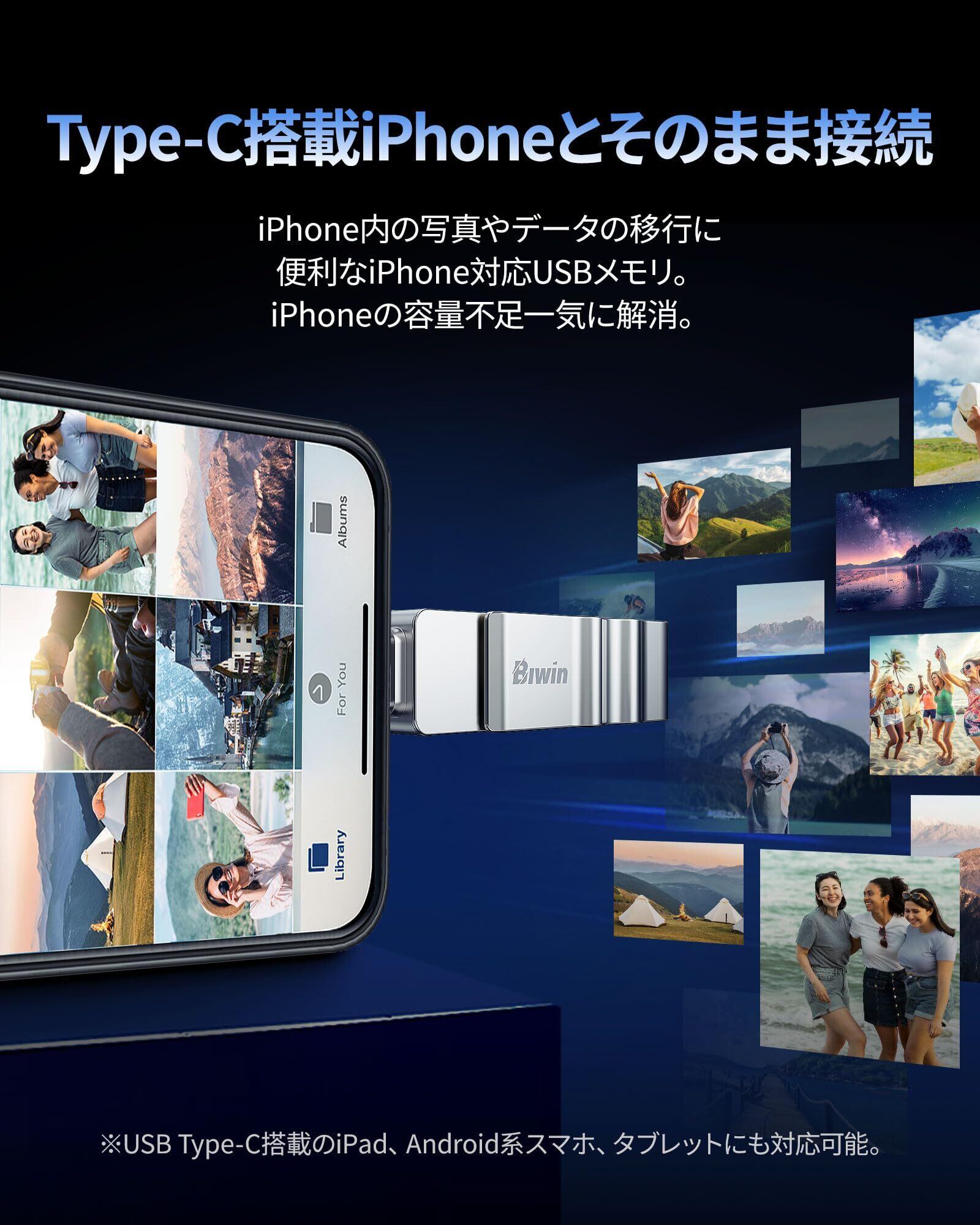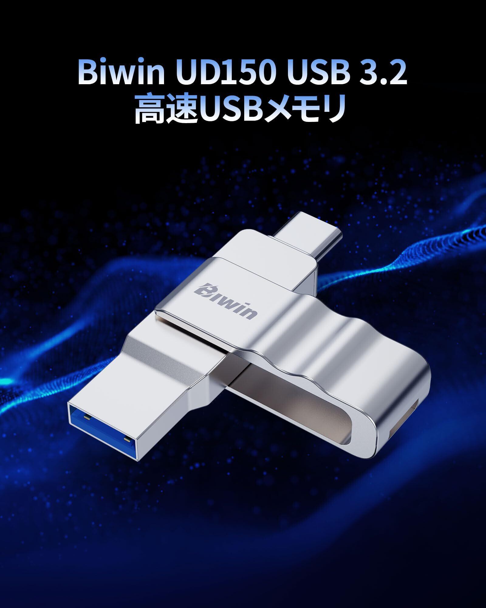 Biwin UD150 USB メモリ Type-C/A 2in1 回転式 64GB USB 3.2 高速 最大読出速度150MB/s 金属製 軽量&耐久性 USB-C/Aデュアルコネクタ | FJ即配ストア