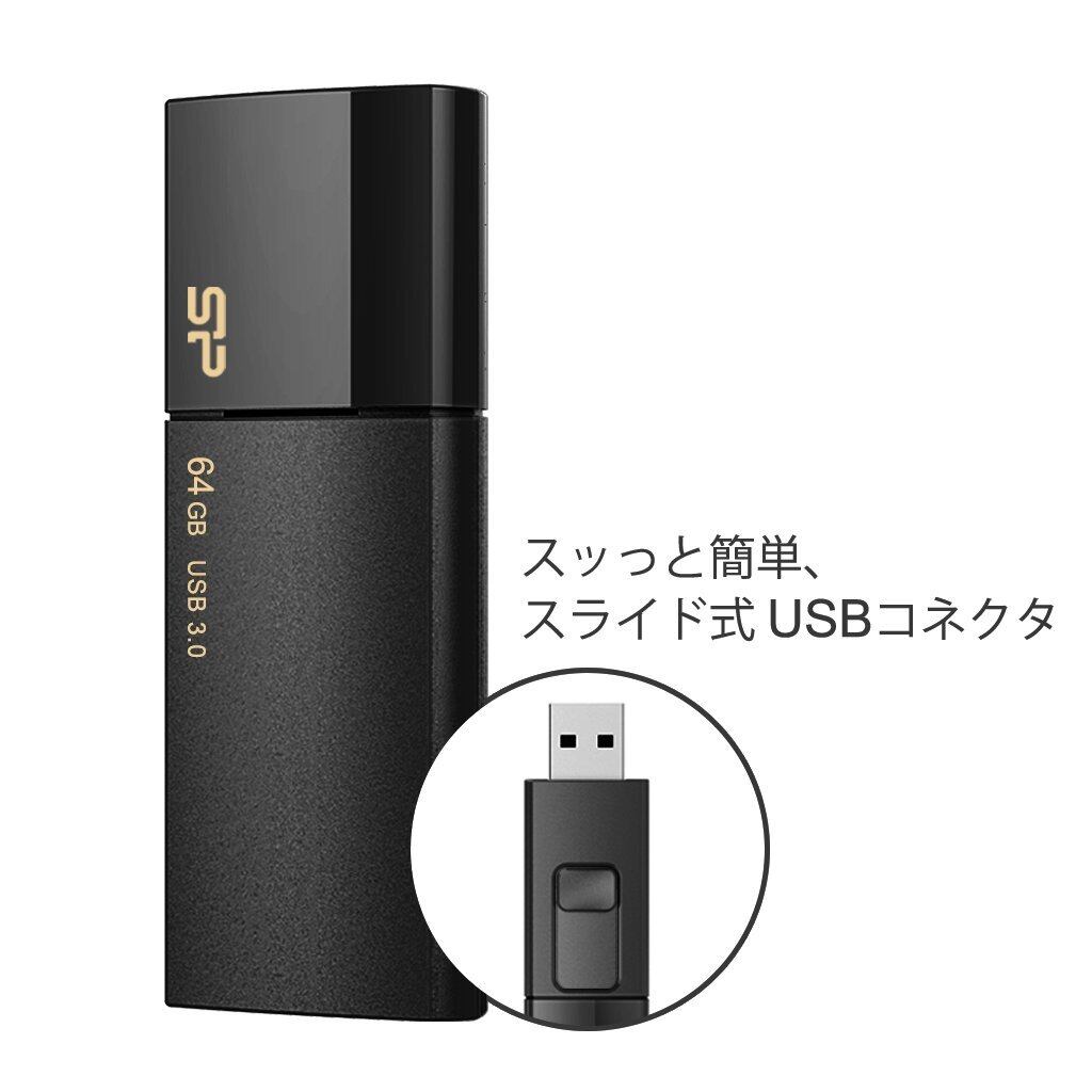 シリコンパワー USBメモリ 64GB USB3.0 スライド式 Blaze B05 ブラック SP064GBUF3B05V1K