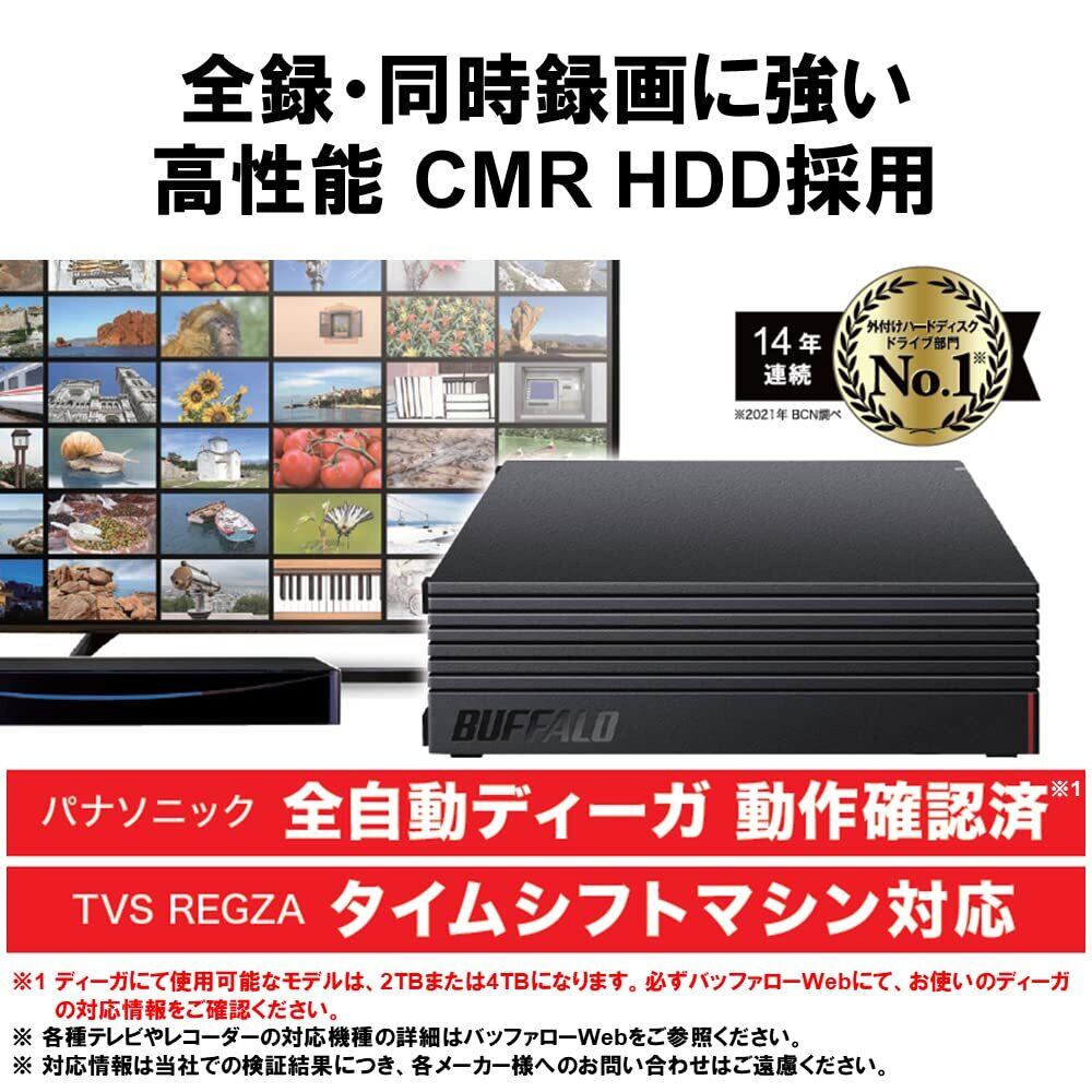 バッファロー CMR HDD採用 外付けハードディスク 4TB テレビ録画/PC/PS4/4K対応 バッファロー製nasne™対応 静音&コンパクト 日本製 故障予測 みまもり合図 HD-ACD4U3