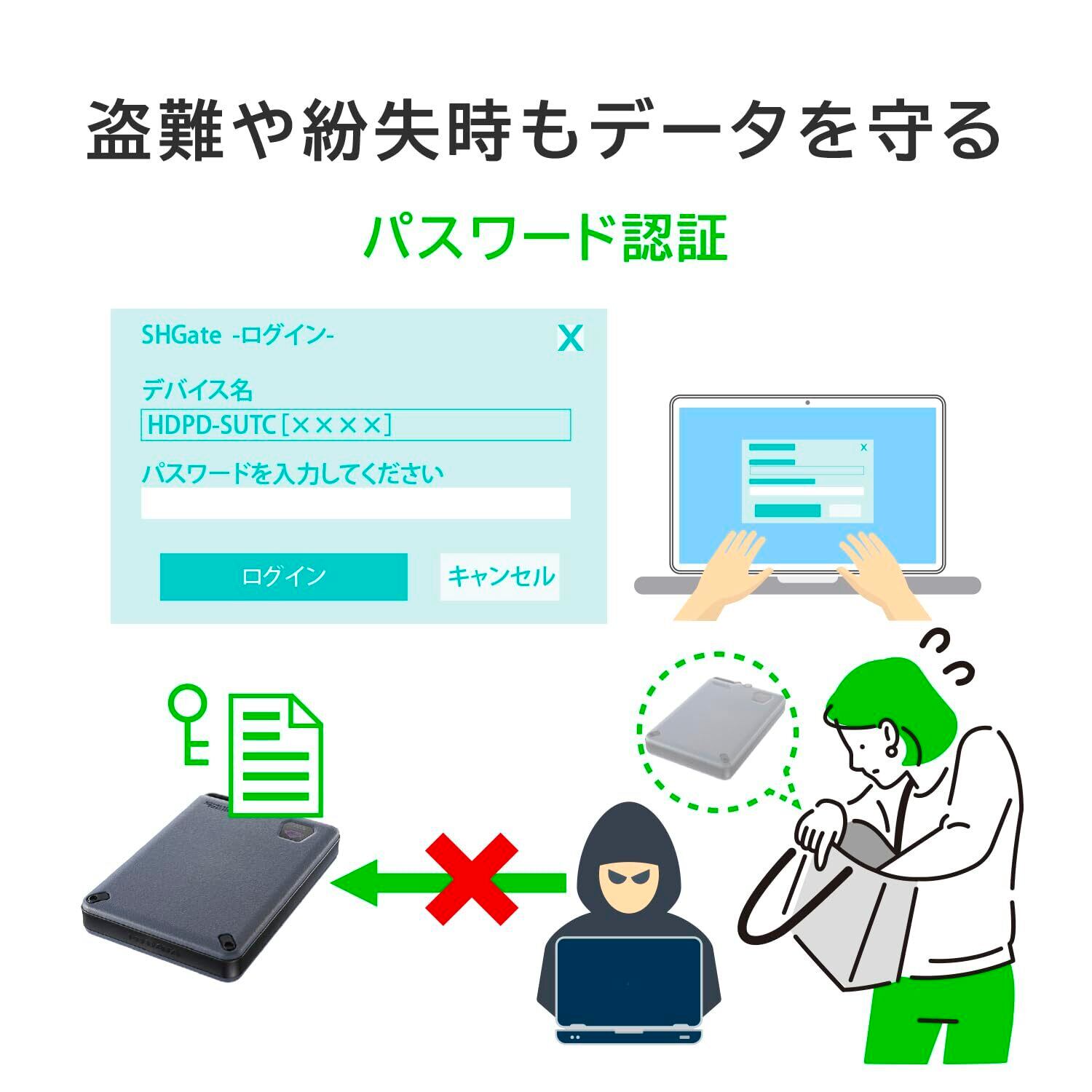 IODATA セキュリティ HDD BizDAS 2TB ハードウェア暗号化 パスワードロック対応 耐衝撃 ポータブルHDD USB 5Gbps対応 日本メーカー HDPD-SUTC2